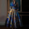 Vintage Floral Printing A-Line Dress Multicolor Turndown Collar Long Sleeve Maxi Long Dress Party Wedding Evening Dress 2025