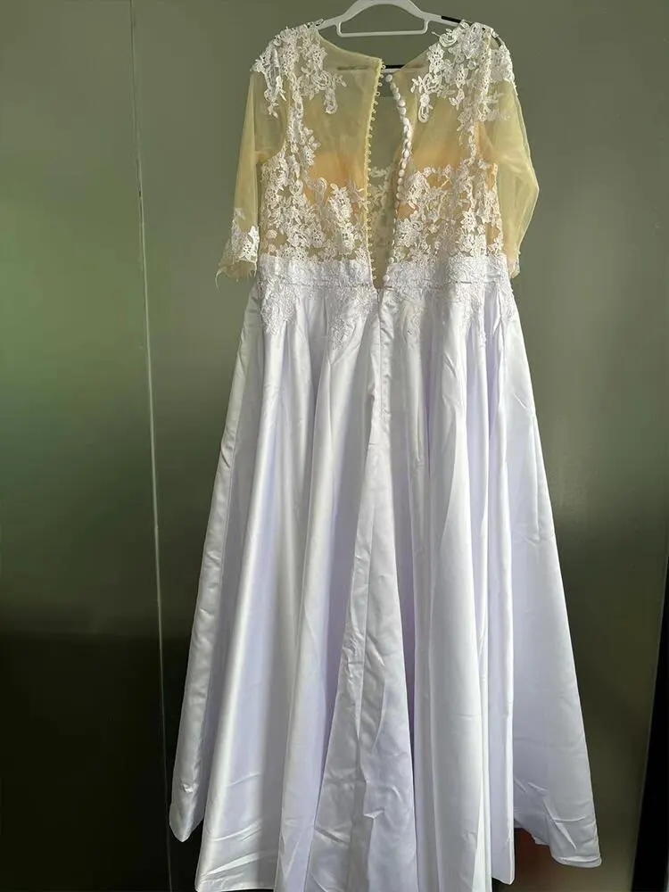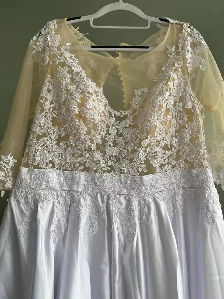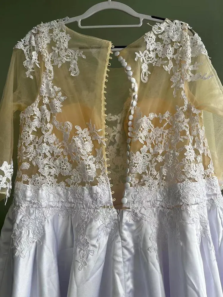 Vintage Lace Long Sleeves Wedding Dresses With Pockets Cвадебное платье Satin A-Line Appliques Back Bridal Gowns