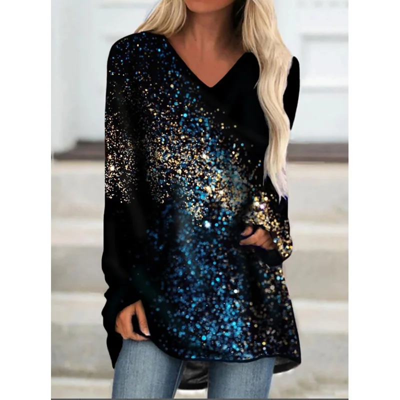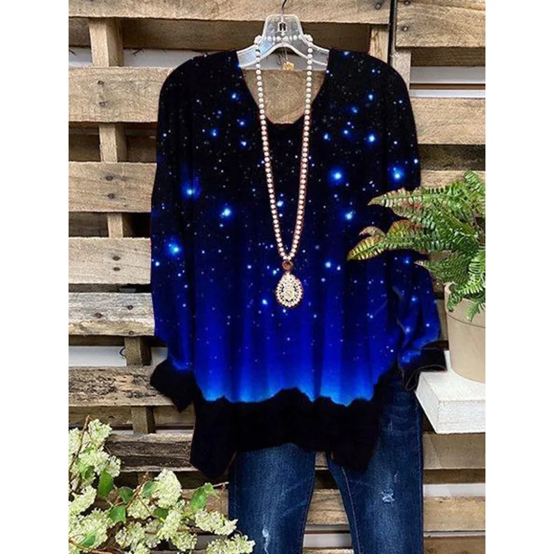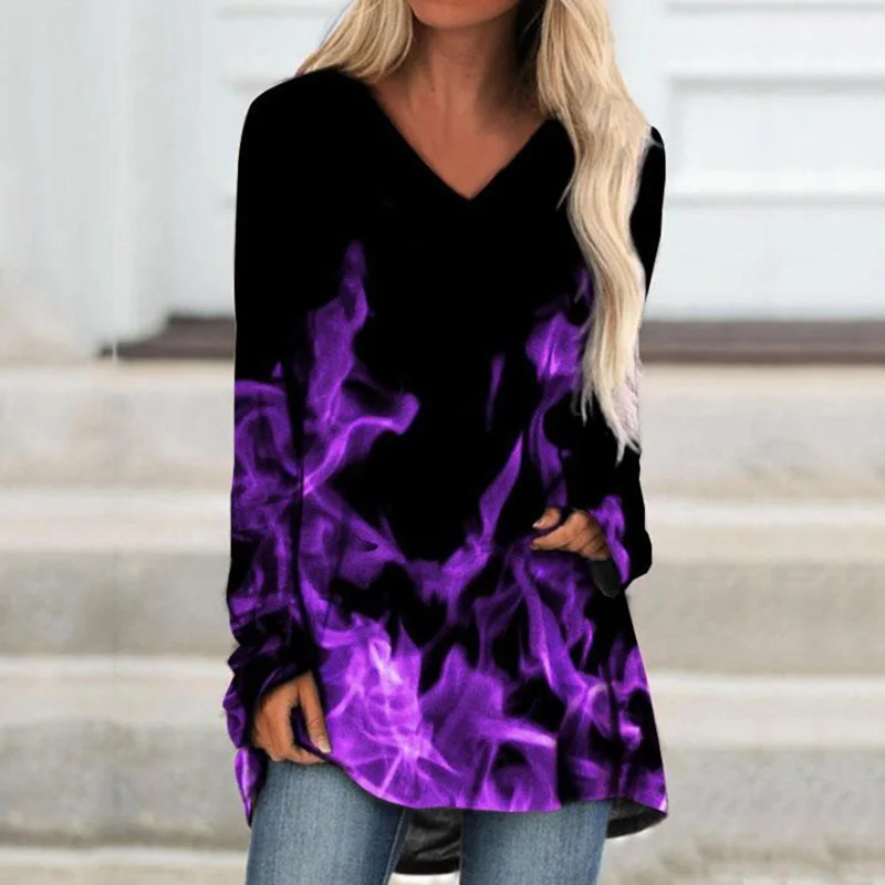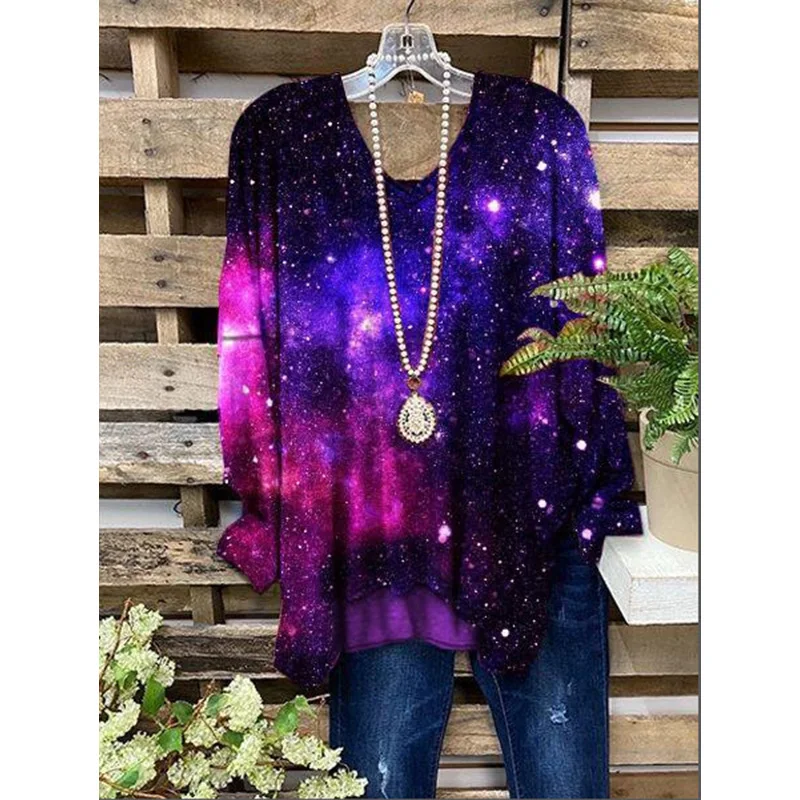 Vintage Printed Women Blouse 2021 Autumn Fashion V-Neck Long-sleeved Pullover Ladies Loose Shirts Casual Female Street Tops