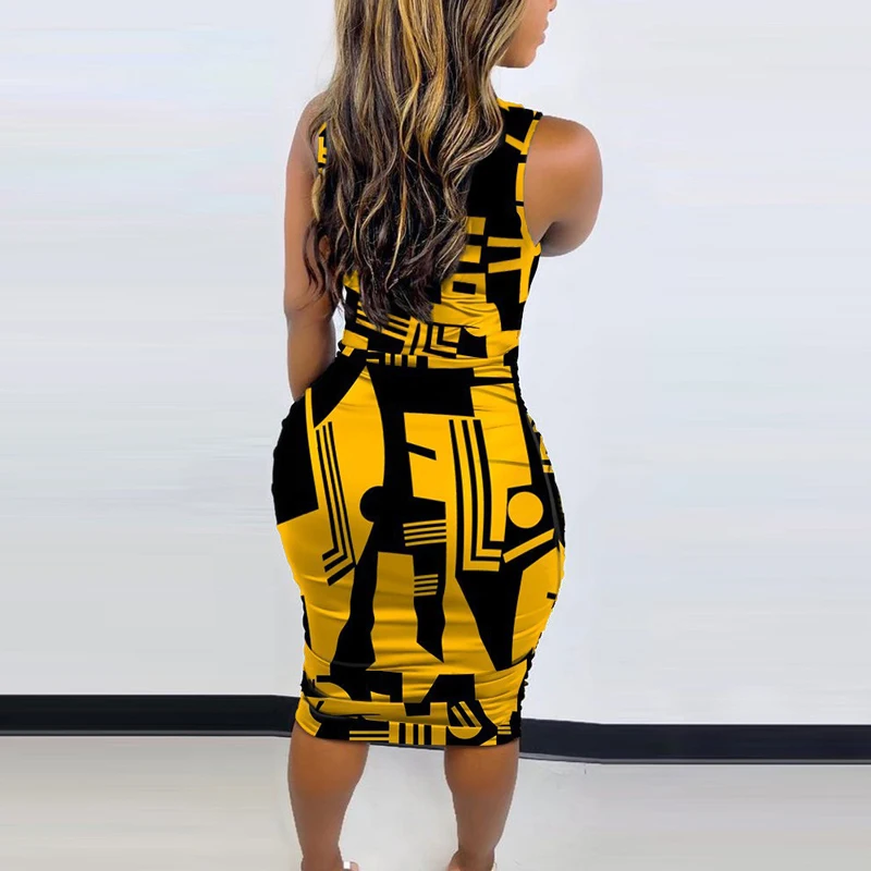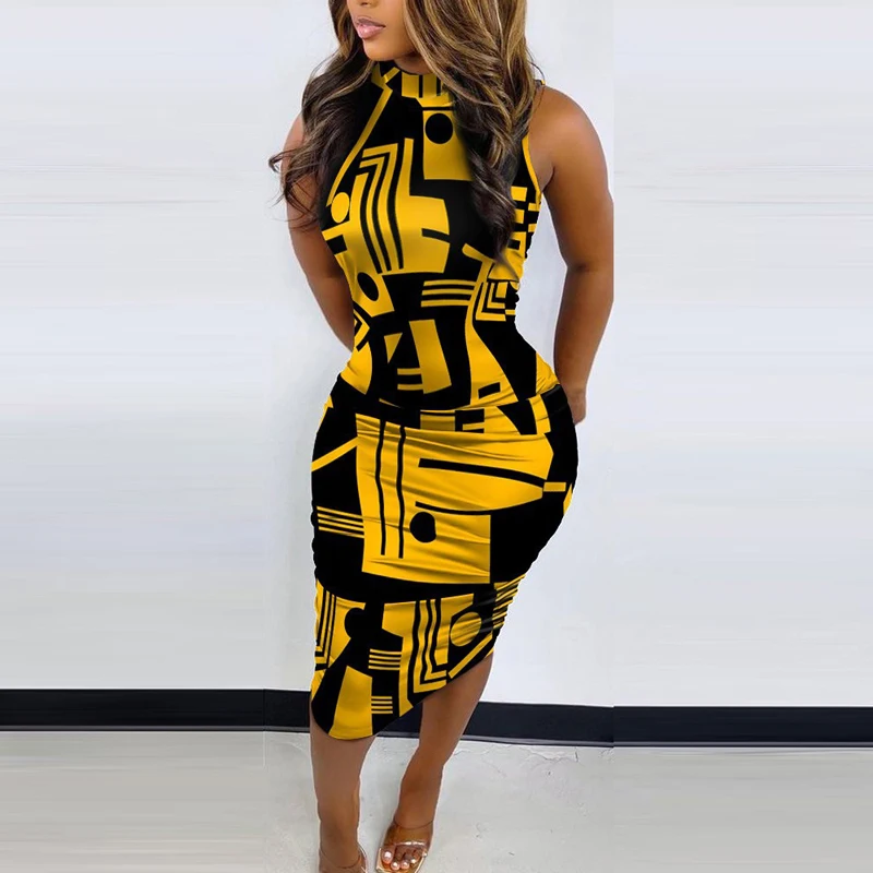 Vintage Printed Women Dress New Summer Fashion O Neck Sexy Sleeveless Slim Maxi Dress Casual Elegant Lady Party Dresses Vestido