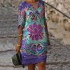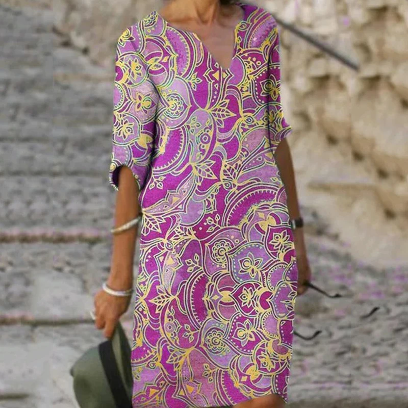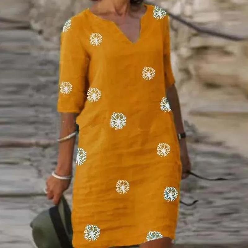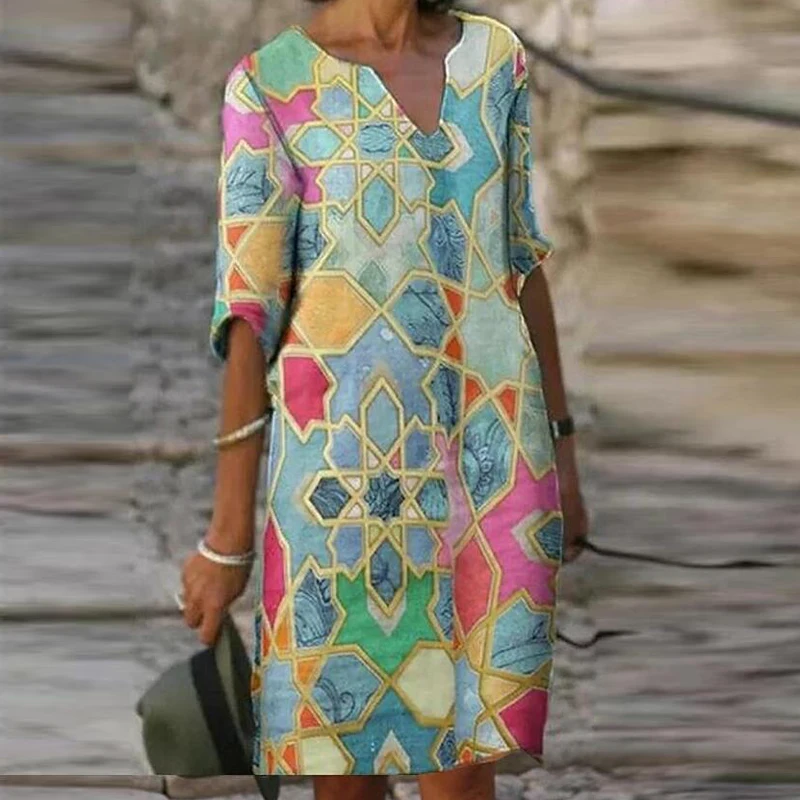 Vintage Printing Women V-Neck Half Sleeve A-Line Dresses Casual 2022 Fashion Summer Female Loose Sundress Lady Vestidos