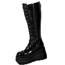 Vintage Pu Leather Mid Calf Boots Women Winter Metal Belt Buckle Thick Heel Long Boots Plus Size 43 Woman's Designer Shoes