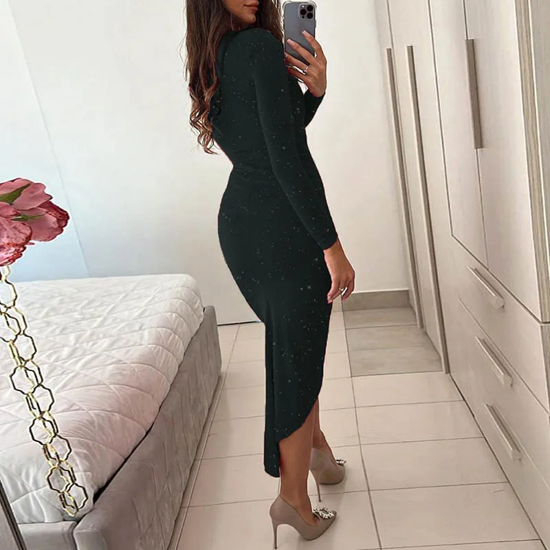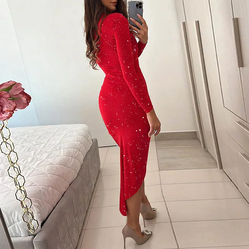 Vintage Solid Women Dress New Spring Long-sleeved Sexy Deep V Neck High Slit Slim Party Dresses Fashion Casual Ladies Maxi Dress