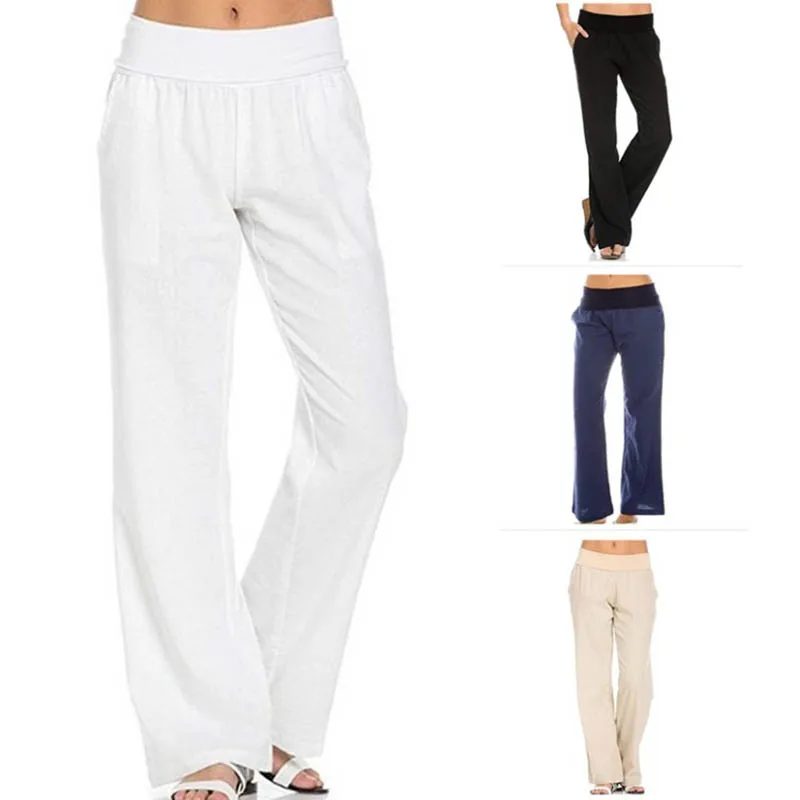 Vintage Solid Women Long Pants 2021 Autumn Fashion High Waist Elastic Straight Loose Pants Casual Elegant Ladies Wide-Leg Pant
