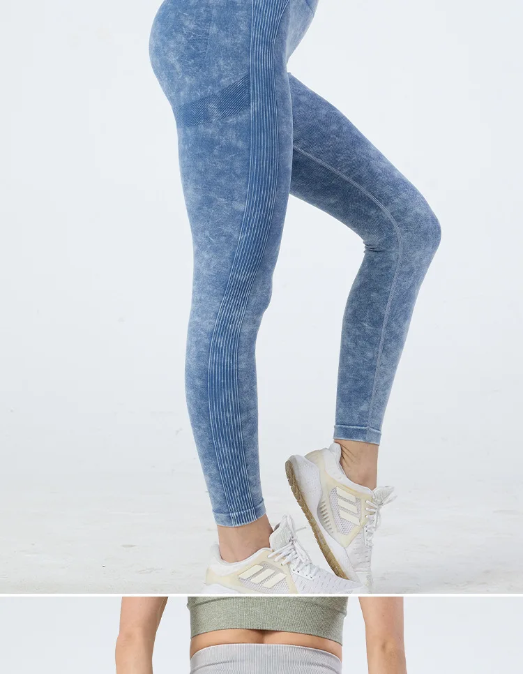 Vintage Washed Pattern Seamless Leggings High Waist Yoga Pants Push Up Gym Workout Leggings Yoga Female Clothing