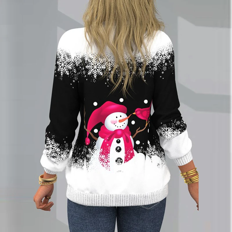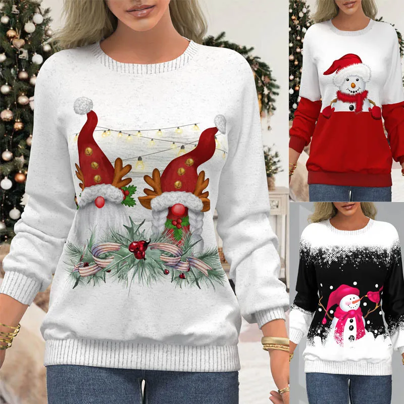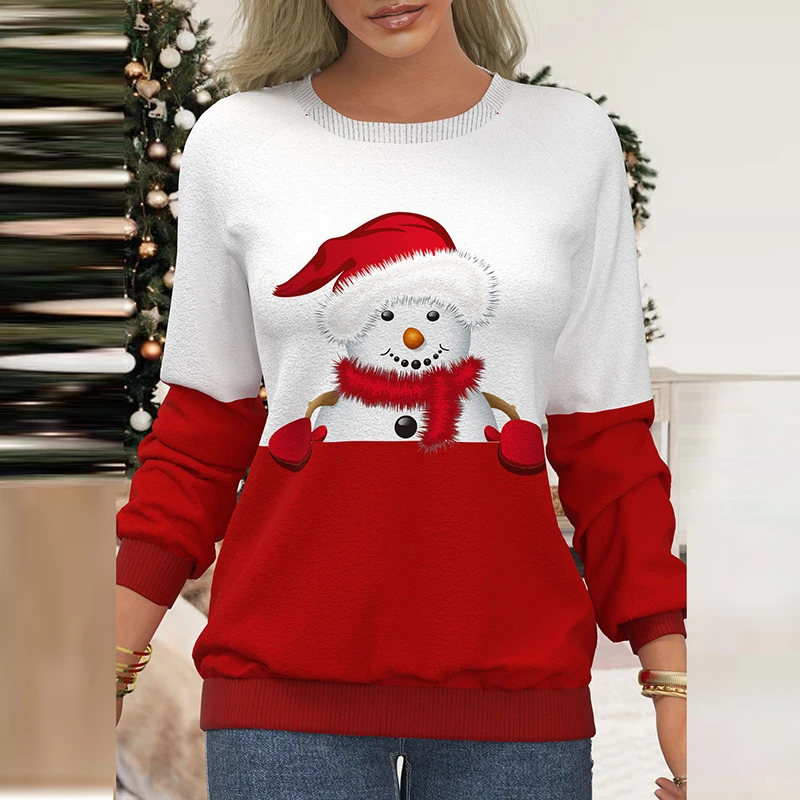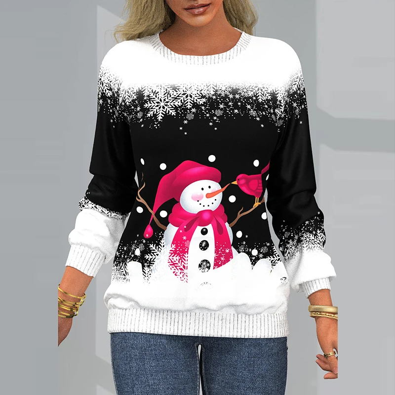 Vintage Women Christmas Snowman Print Sweatshirt Spring Autumn Fashion O-neck Long Sleeve Pullover Tops Ladies Casual Loose Tops