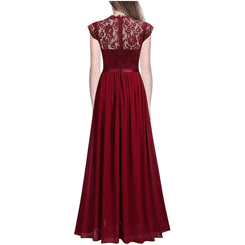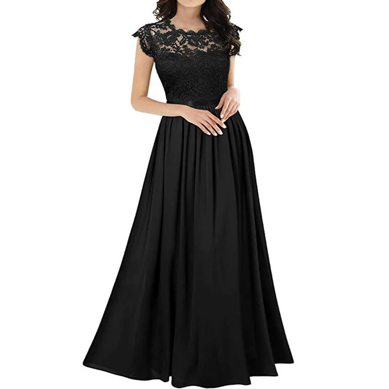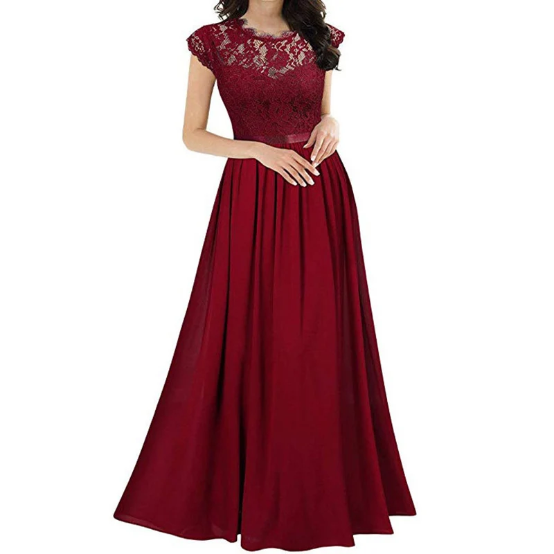 Vintage Women Solid Floral Lace Patchwork A-line Party Dress Summer Fashion O-neck Short Sleeve Maxi Dress Elegant Lady Vestidos