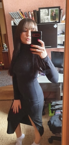 It went to St. Petersburg a little less than a month by the company DPD. I did not track, in principle, whatever, because DPD still sends a notification of receipt. The impression is not bad, but not delight. The dress is made of very thin synthetics, it will be beautiful to sit only with an ideal figure (I'm talking about a blue dress). I have a normal figure, I do not have much excess fat, I wear M, I ordered L. The dress emphasizes every flaw, up to that you can see longitudinal strips from the press, but they look like fat, the ass also stands out strongly to indecency. Dress like it called, as if it makes you thicker, perhaps with the HL it would not be, but then I would have to shorten the length. I do not talk about panties, which are emphasized by the material as much as possible, you need to wear the finest... Ideally, seamless, naturally without any scraps, laces, etc. But the color is beautiful, it lengthens the height, does not look like cheap.