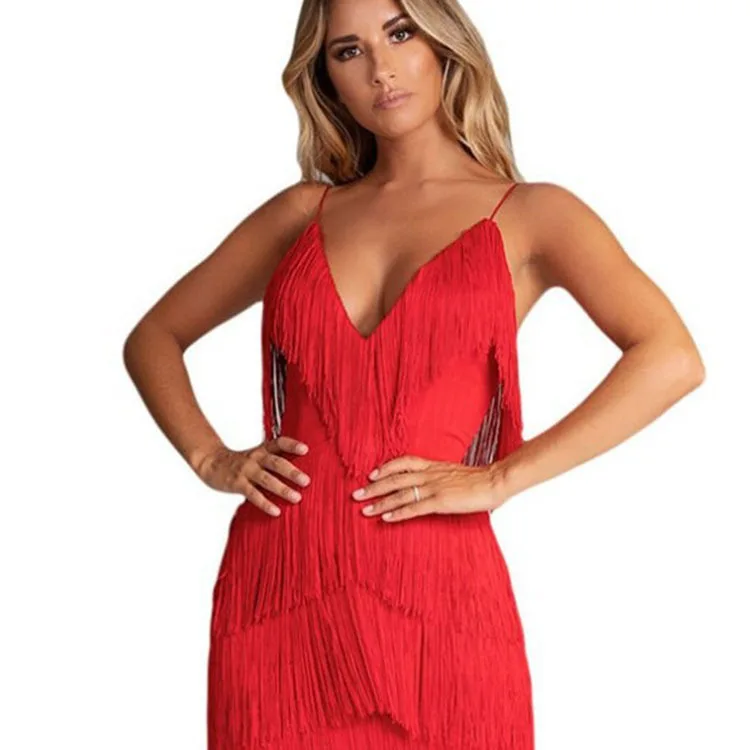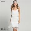 Waterarea 2019 Summer Women Strapless Sleeveless Solid Color Fringe Knee-Length Dress Sexy Night Party Club Dress