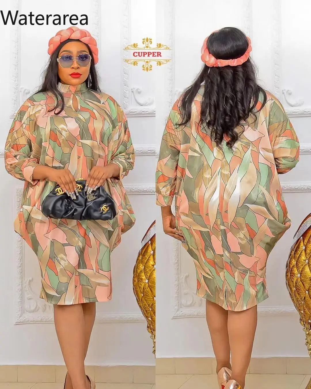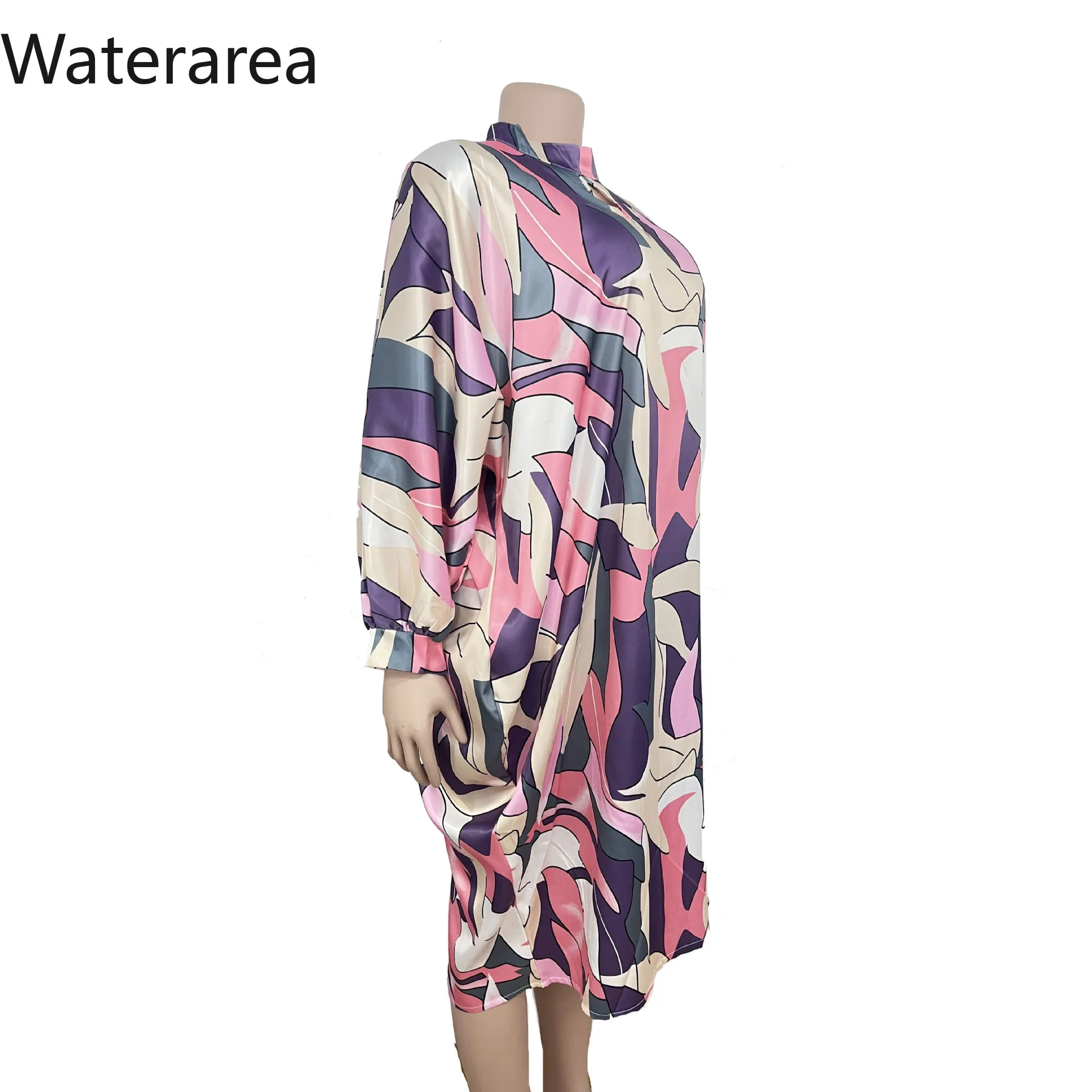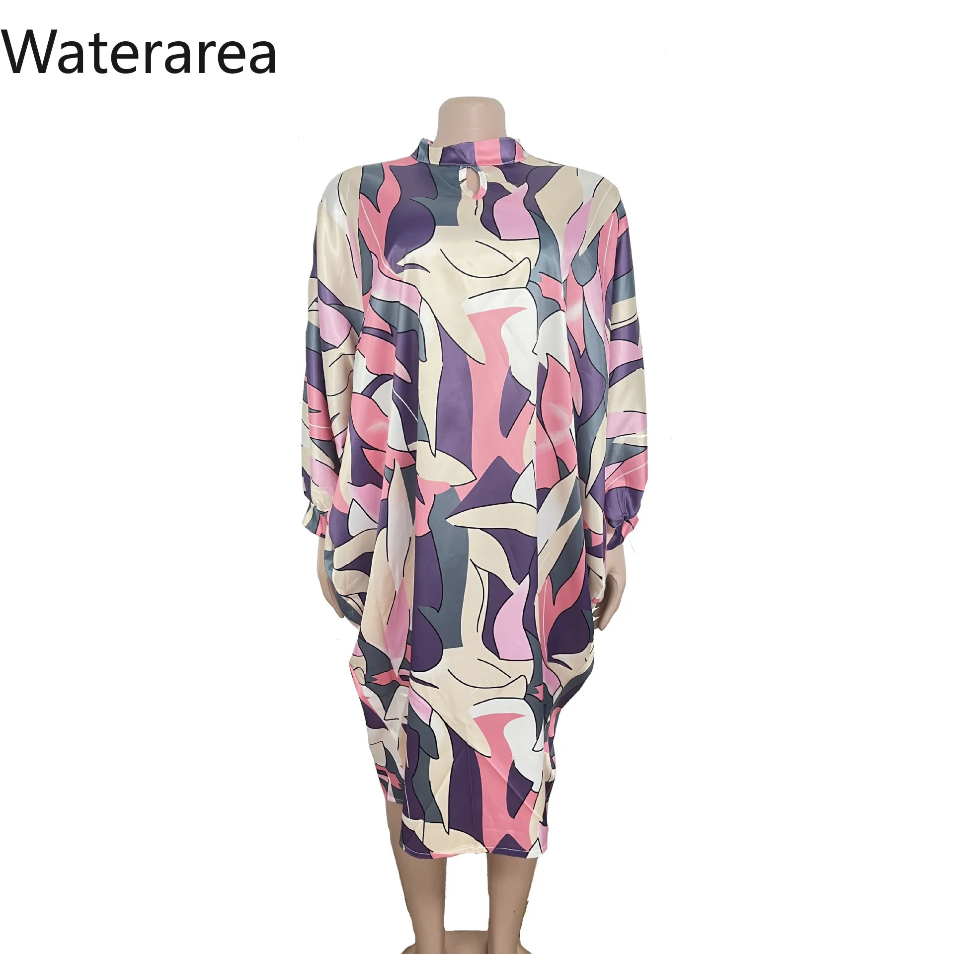 Waterarea 4XL African Loose Dress Elegant Party Dress for Women Autumn New Fashion Print Midi Dresses Africa Clothes