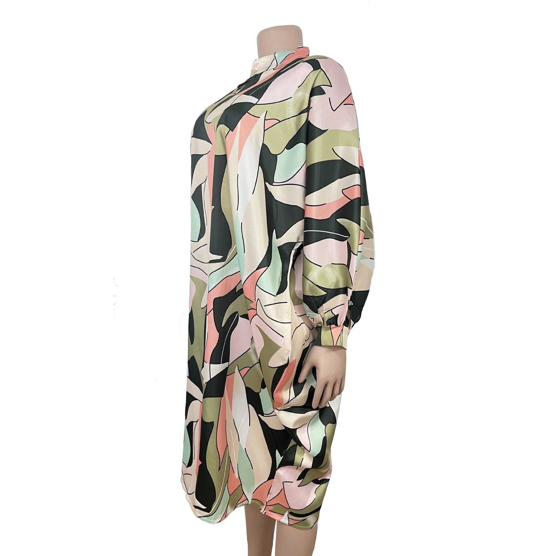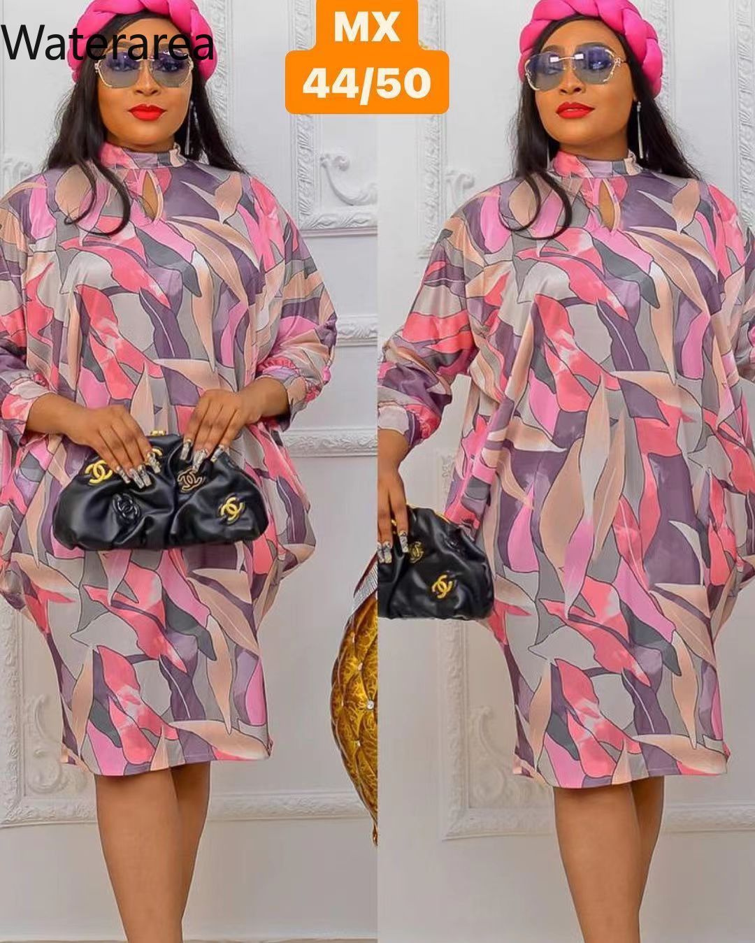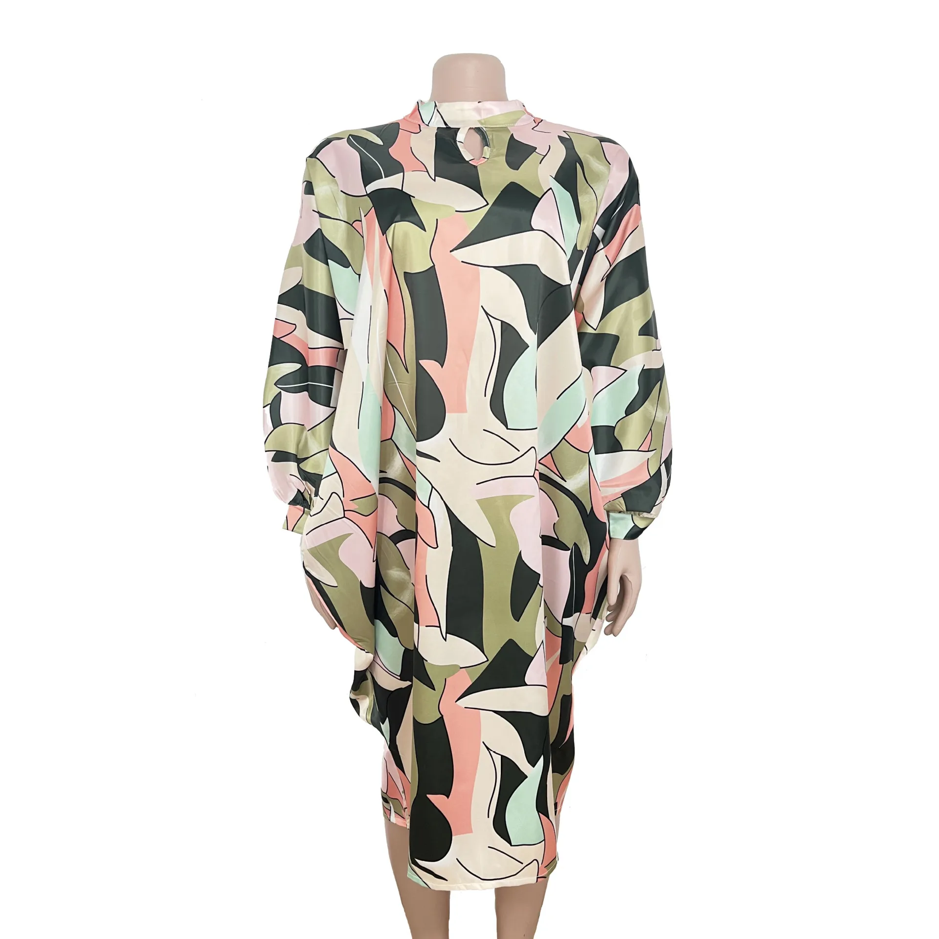 Waterarea 4XL African Loose Dress Elegant Party Dress for Women Autumn New Fashion Print Midi Dresses Africa Clothes