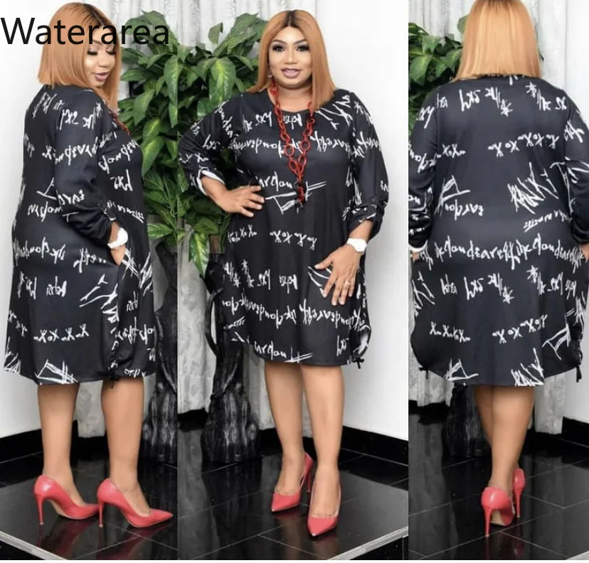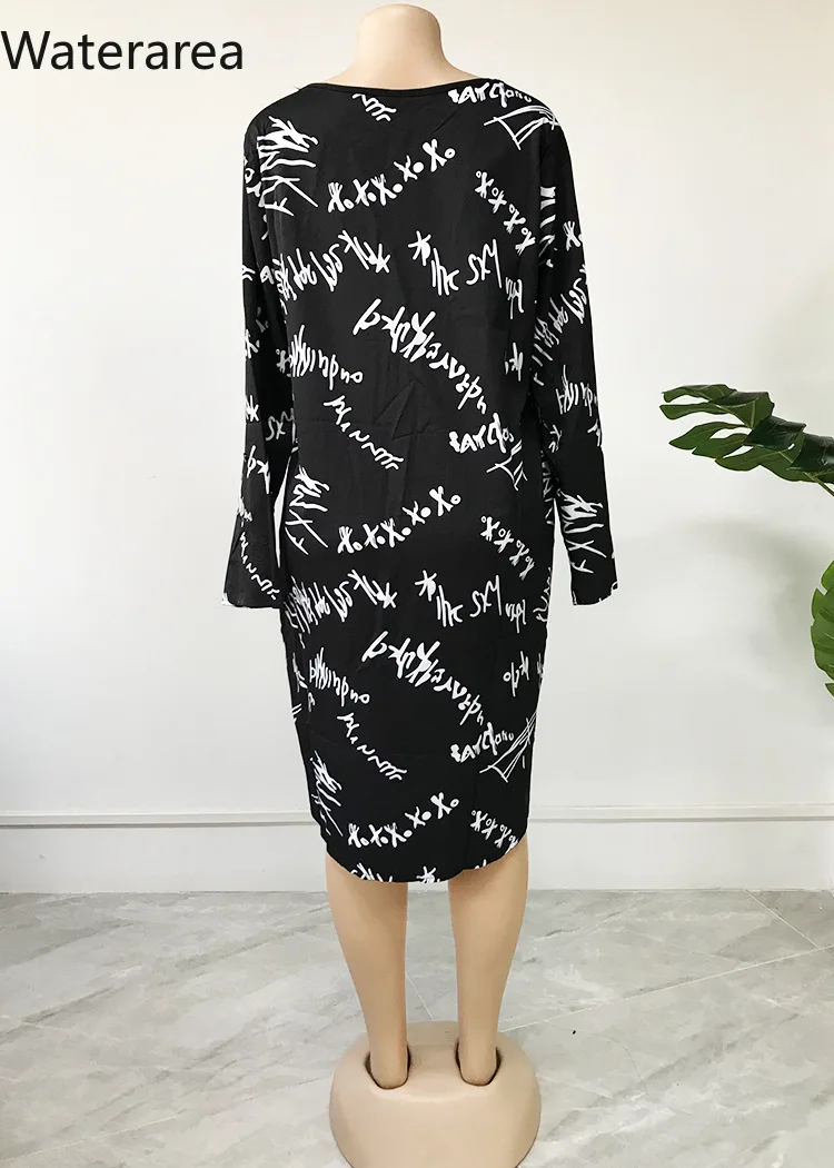 Waterarea Fashion Loose Graffiti Dress Streetweat Women Midi Vestido African New Casual Pockets Shirt Dress Spring 2022
