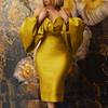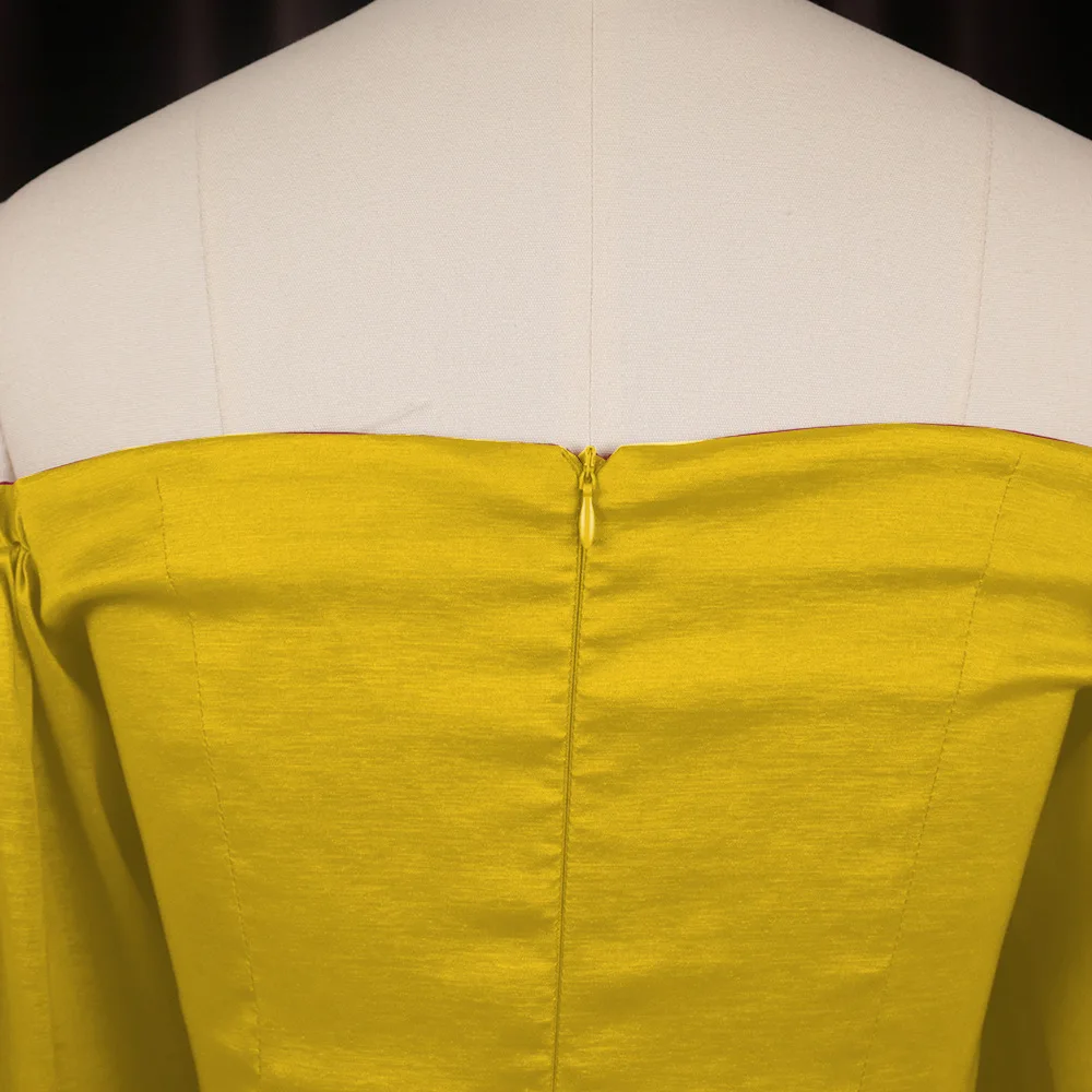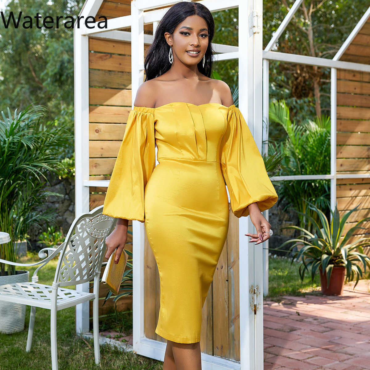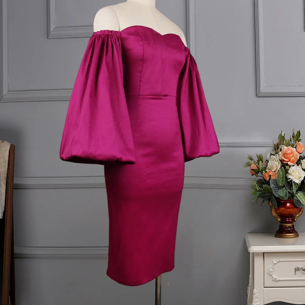 Waterarea Lantern Sleeve Strapless Elegant Slim Knee-Length Dress for Women Ruched Hight Waist Elegant Clubwear Party Dresses