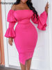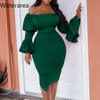 Waterarea New Spring Solid Women Dress Fashion Sexy Slash Neck Flare Sleeves Midi Dress Sweet Bodycon Vestido African