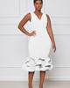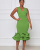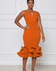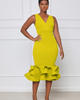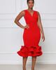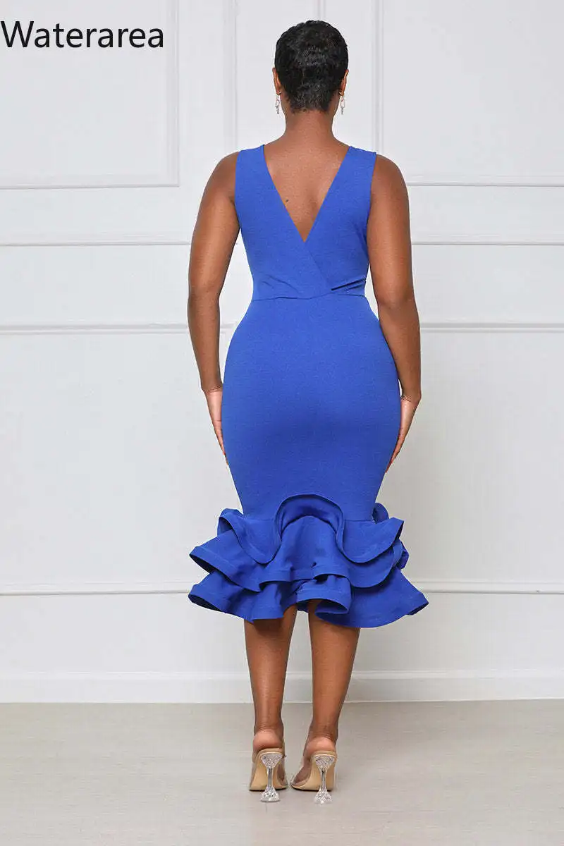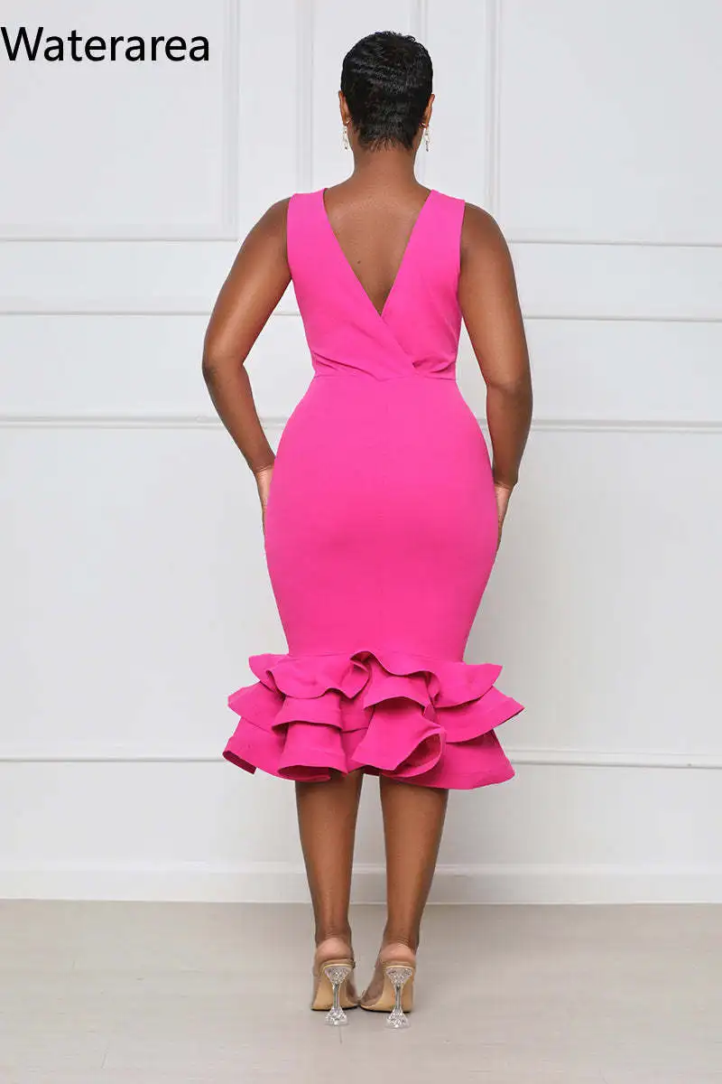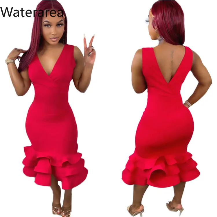 Waterarea Sexy Deep V Neck Sleeveless Dress Elegant Hem Ruffles Pencil Dress Clubwear Evening Party Dress Retro Midi Dress New