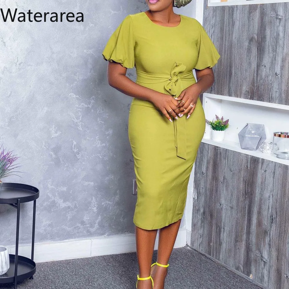 waterarea sexy solid short sleeves pencil dress office lady occupation high waist belt bodycon vestido newspring summer
