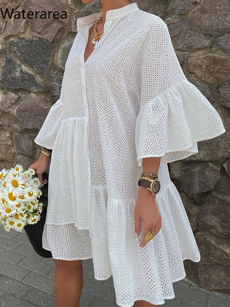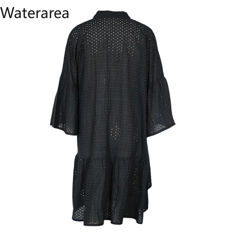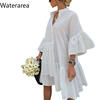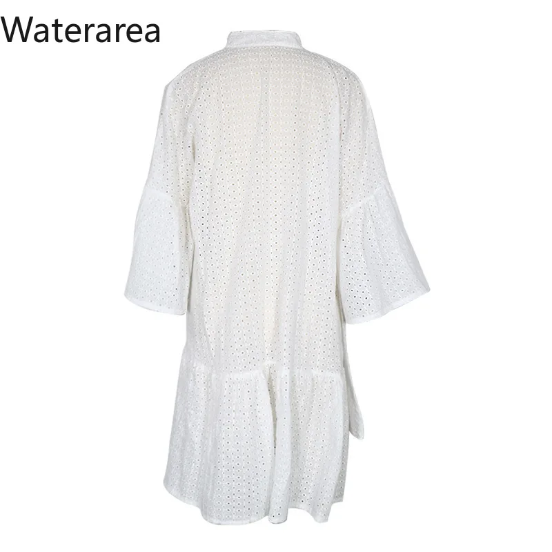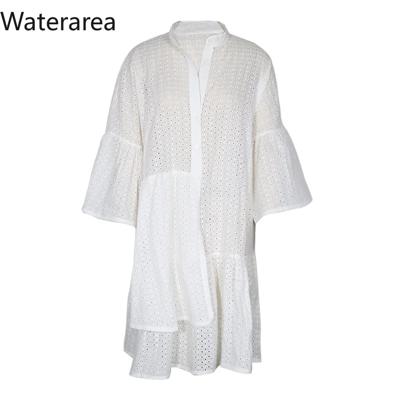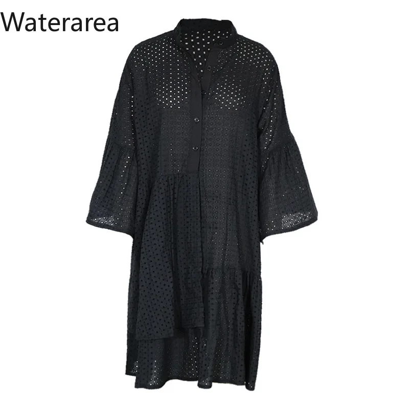 Waterarea Sexy Solid Stand Collar Women Dress Fashion Irregular Loose Midi Vestido Casual Streetwear Buttons Straight Dress