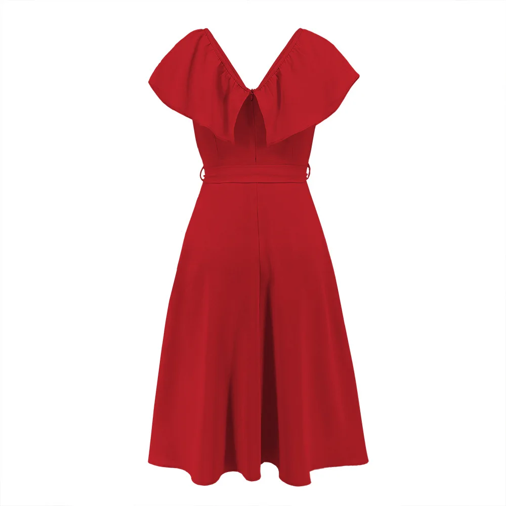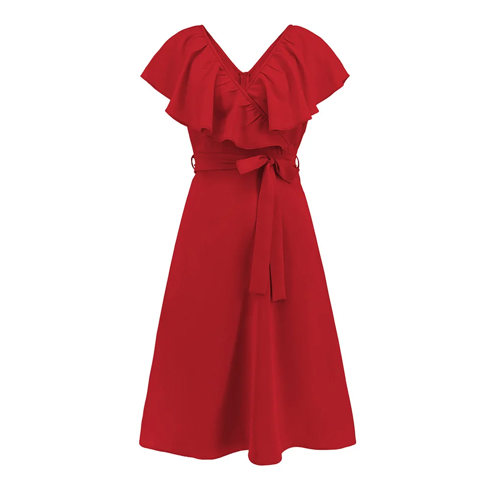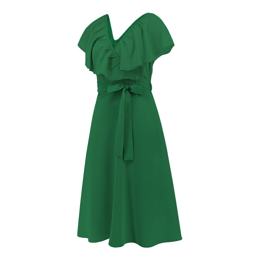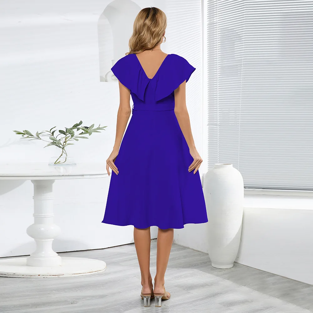 Waterarea Sexy V-neck Ruched Butterfly Sleeve Bandage Office Midi Dresses for Women Vintage Slim Street A-line Evening Dress