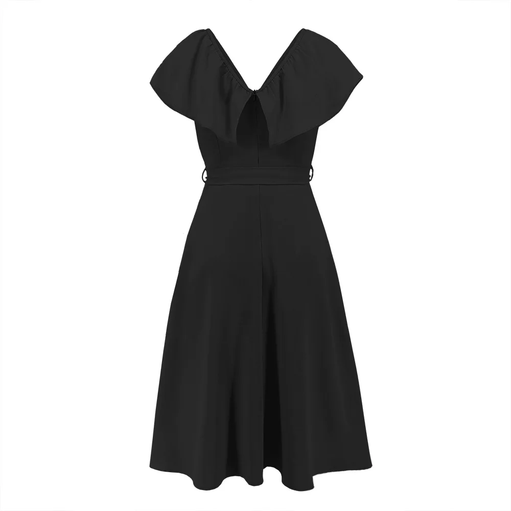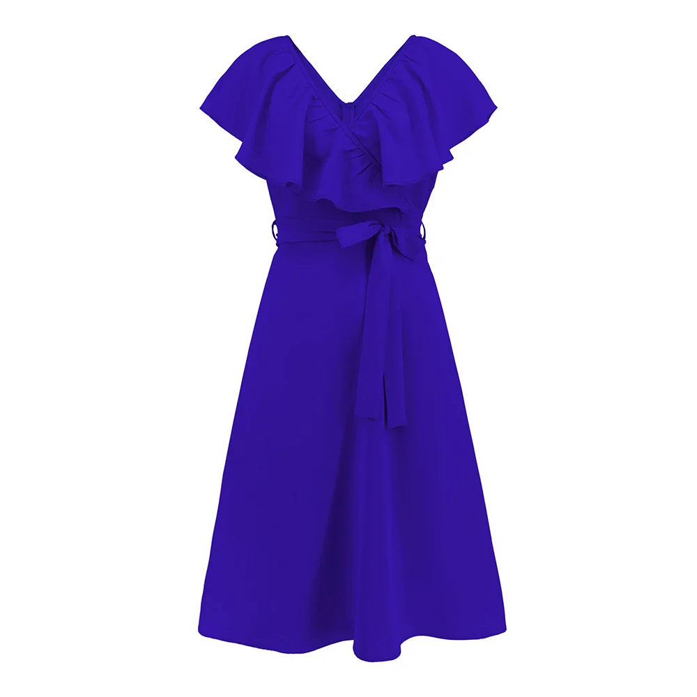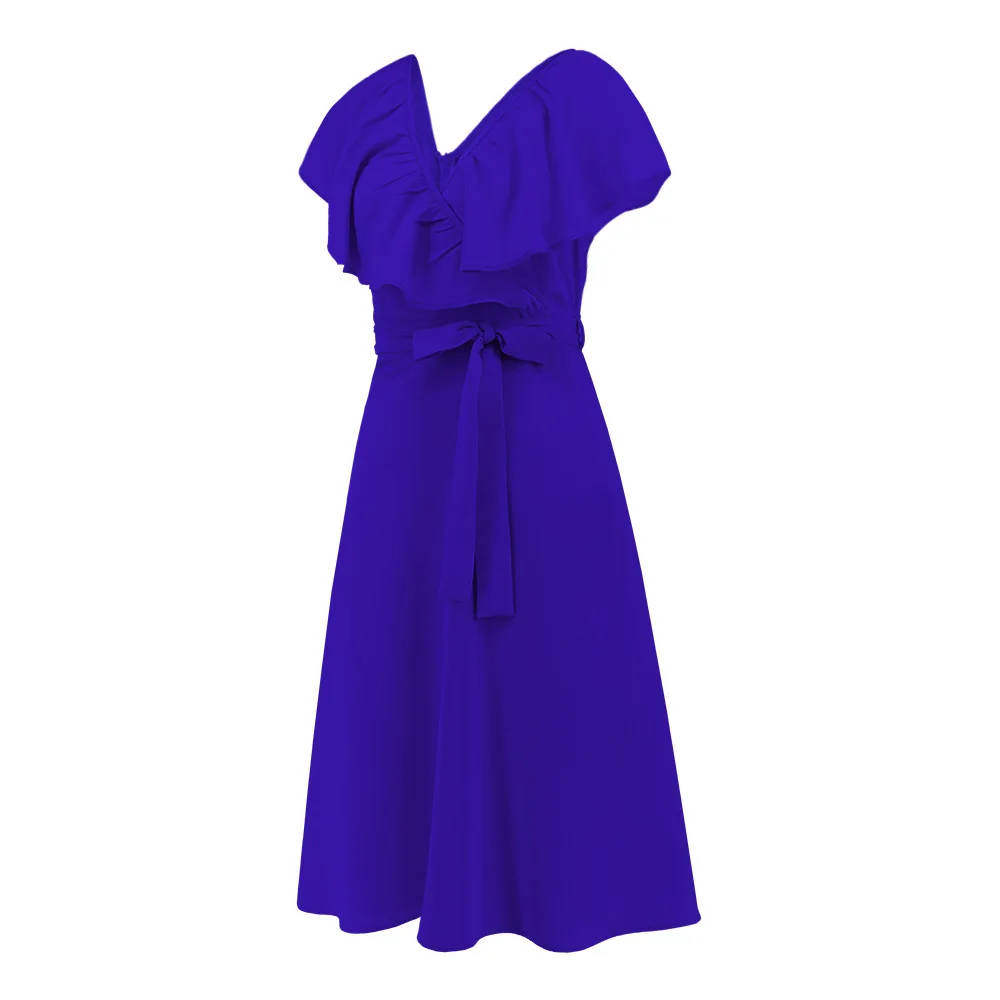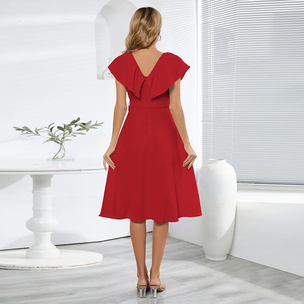 Waterarea Sexy V-neck Ruched Butterfly Sleeve Bandage Office Midi Dresses for Women Vintage Slim Street A-line Evening Dress