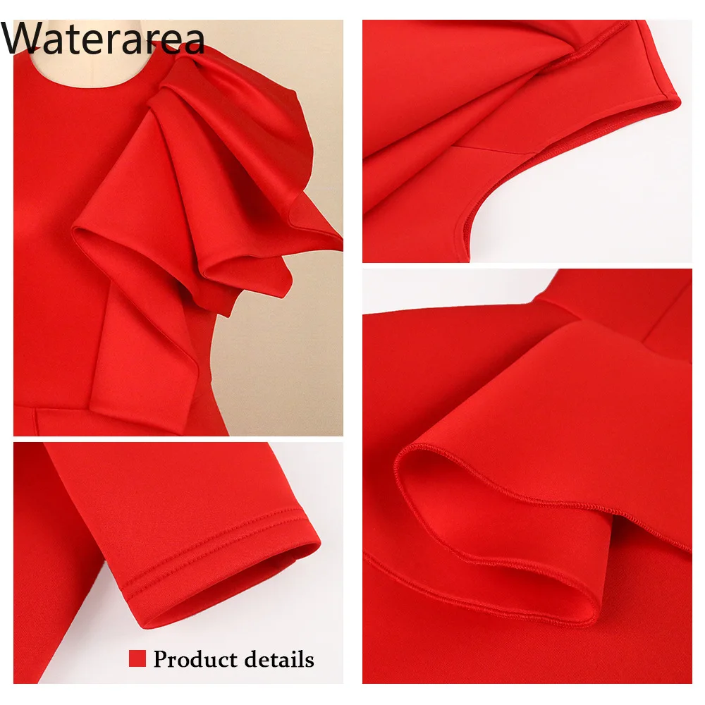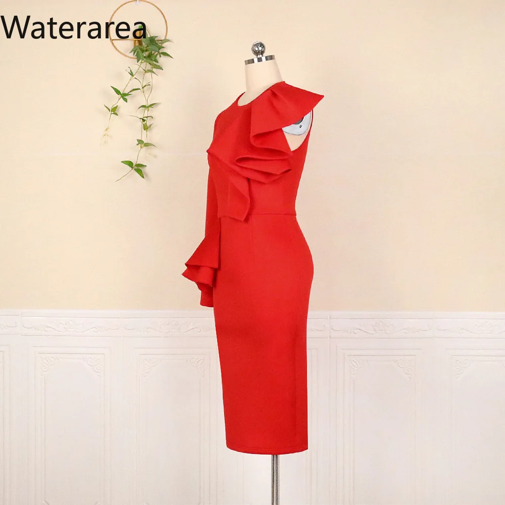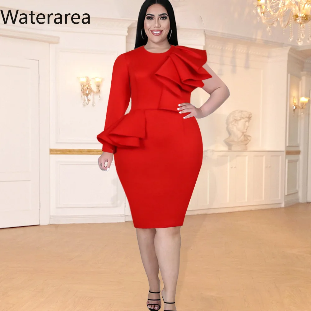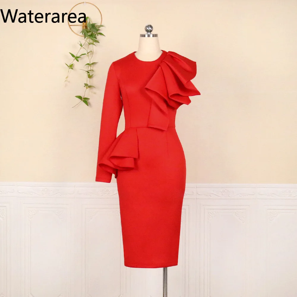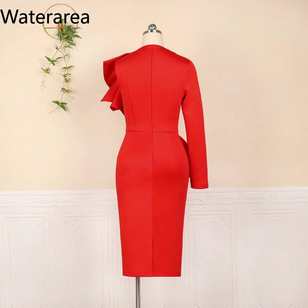 Waterarea Solid Autumn Winter Women's Dresses Sexy Party Dress One Shoulder Ruffle Bodycon Vestido Elegants Pencil Dress New