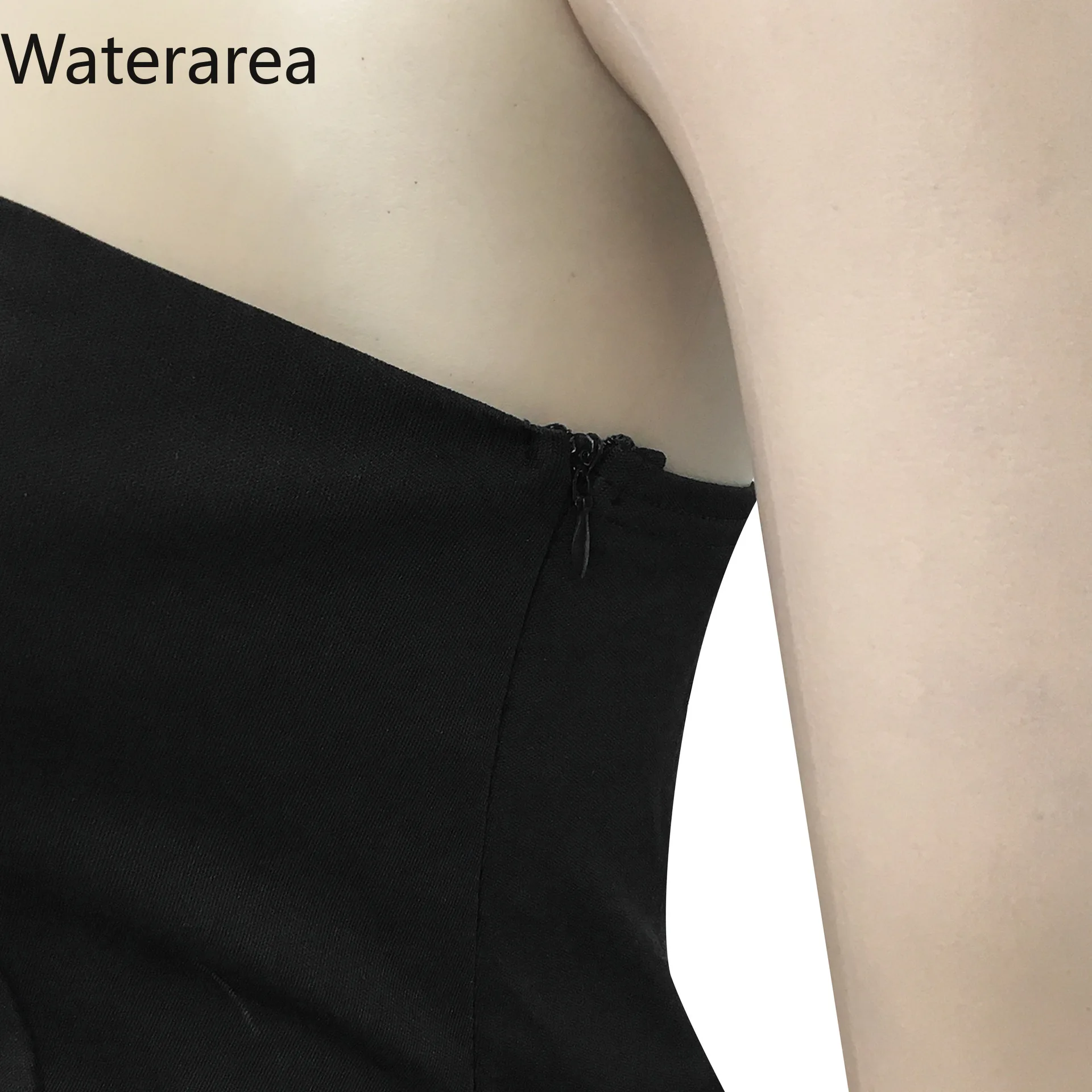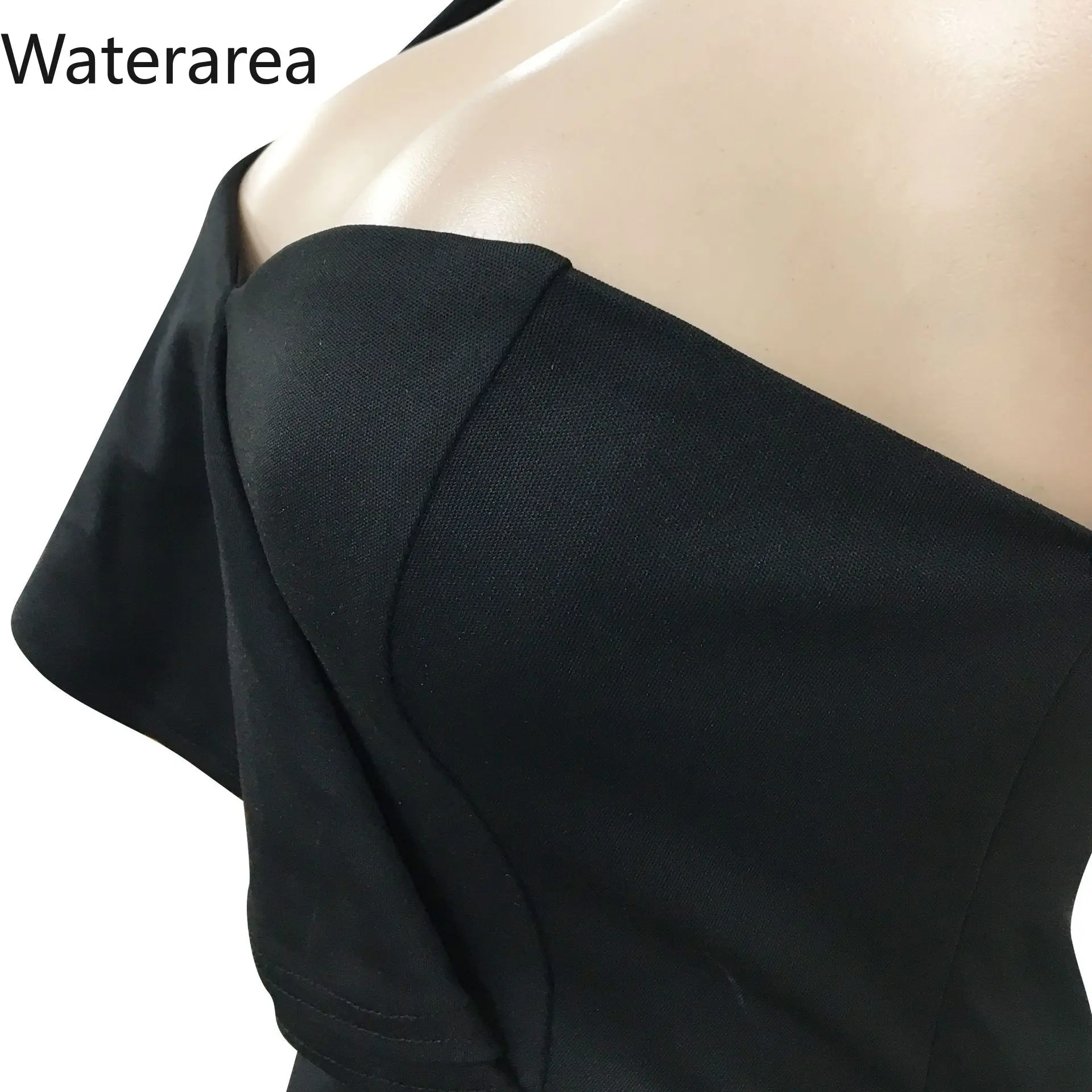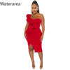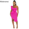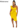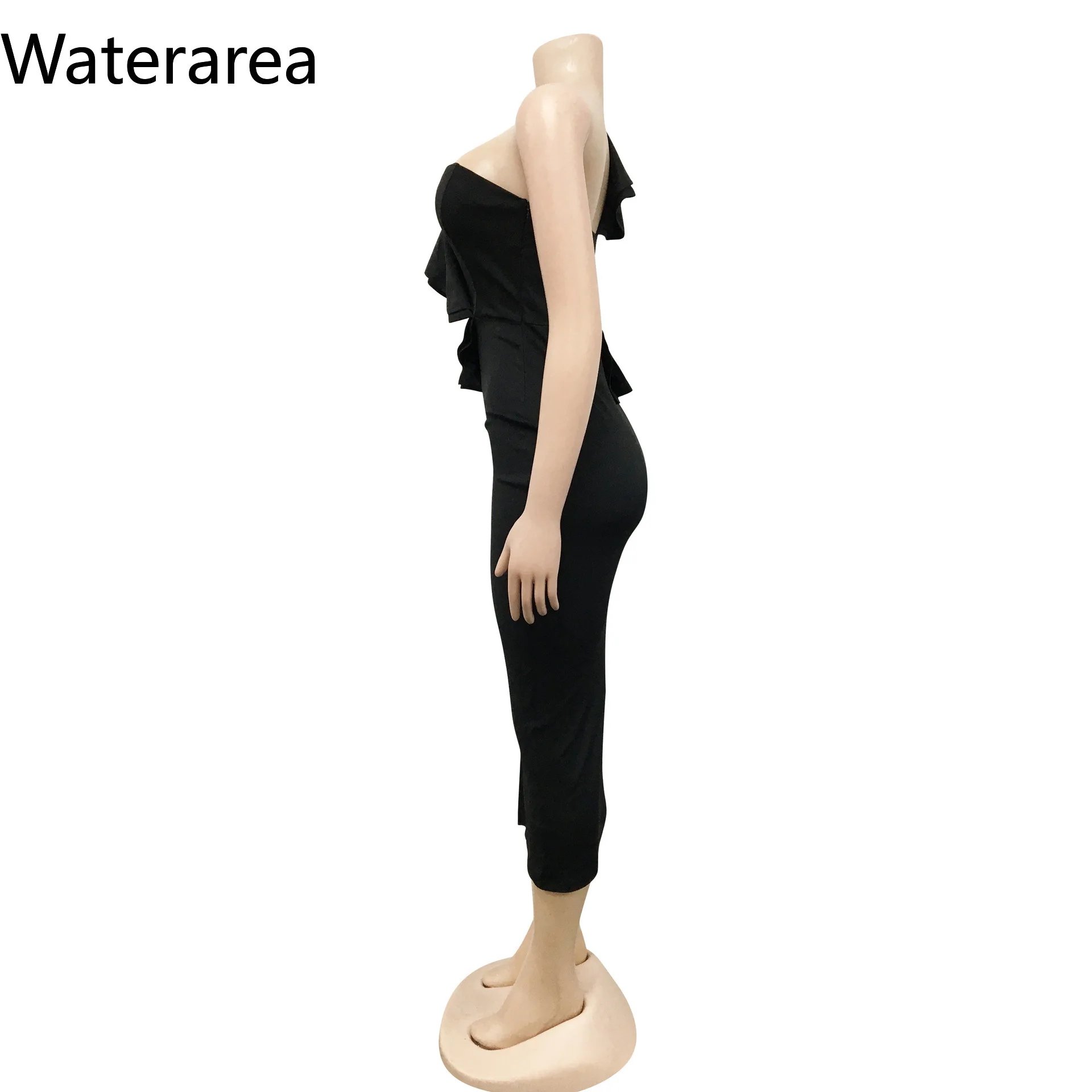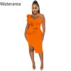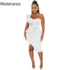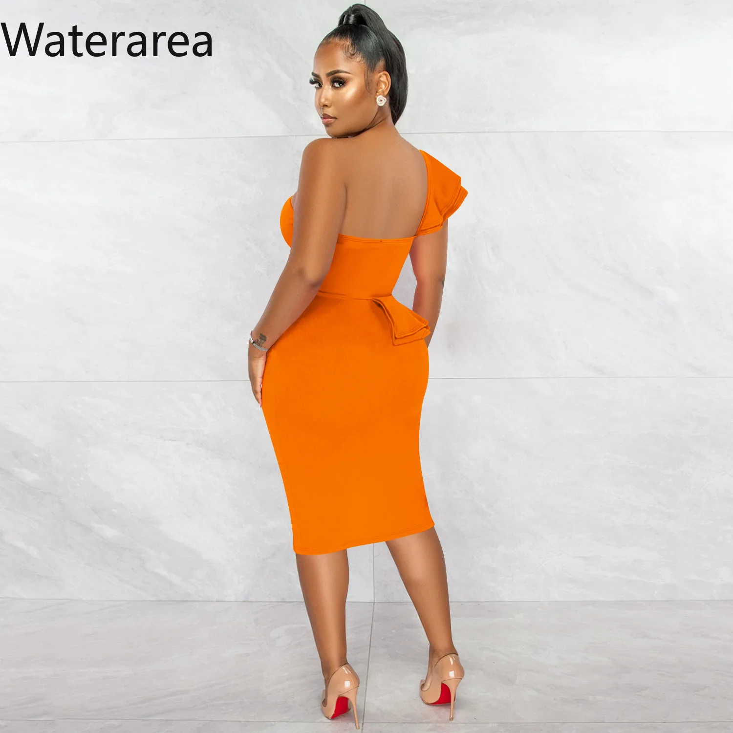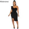 Waterarea Solid Women's Dresses Fashion Ruffles Sexy Inclined Shoulder Midi Dress Split Pencil Dress Elegant Evening Party Dress
