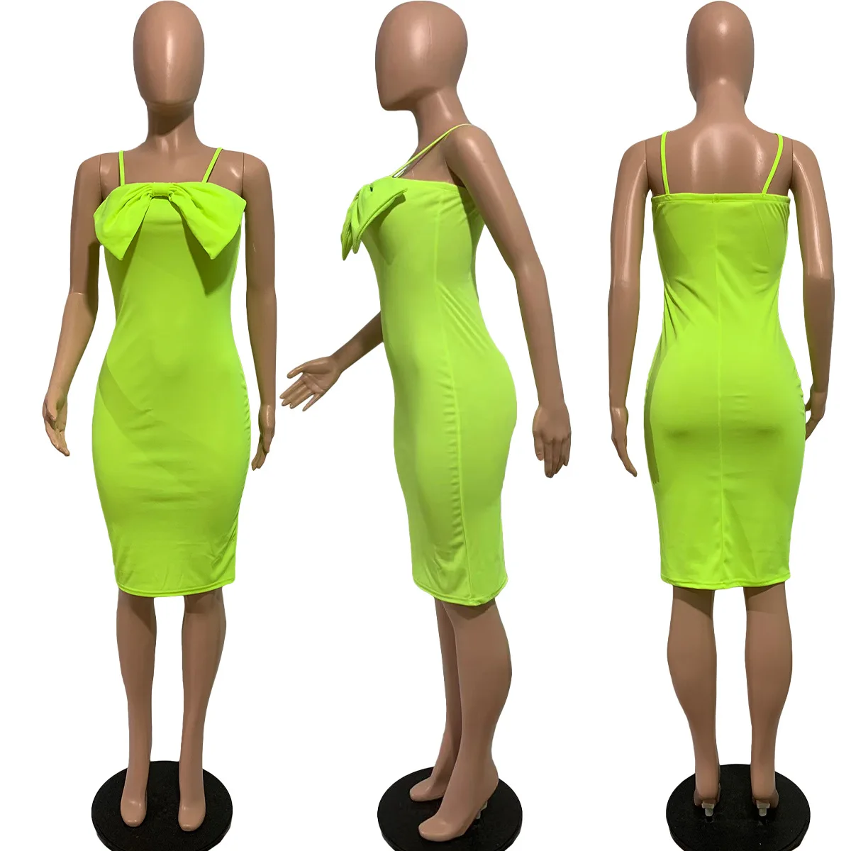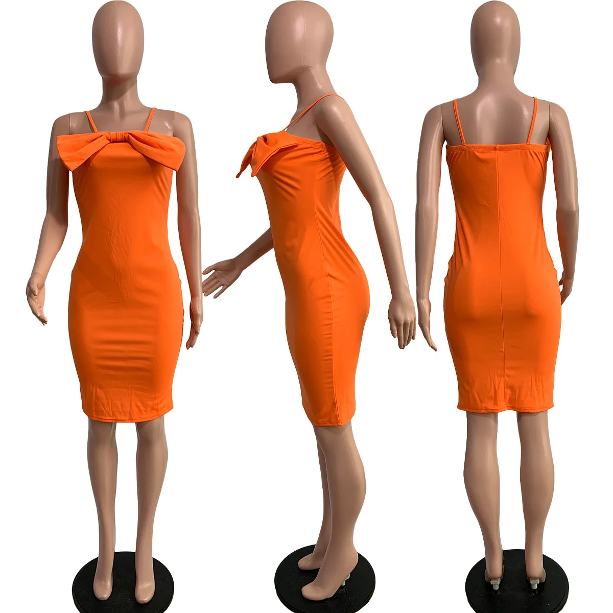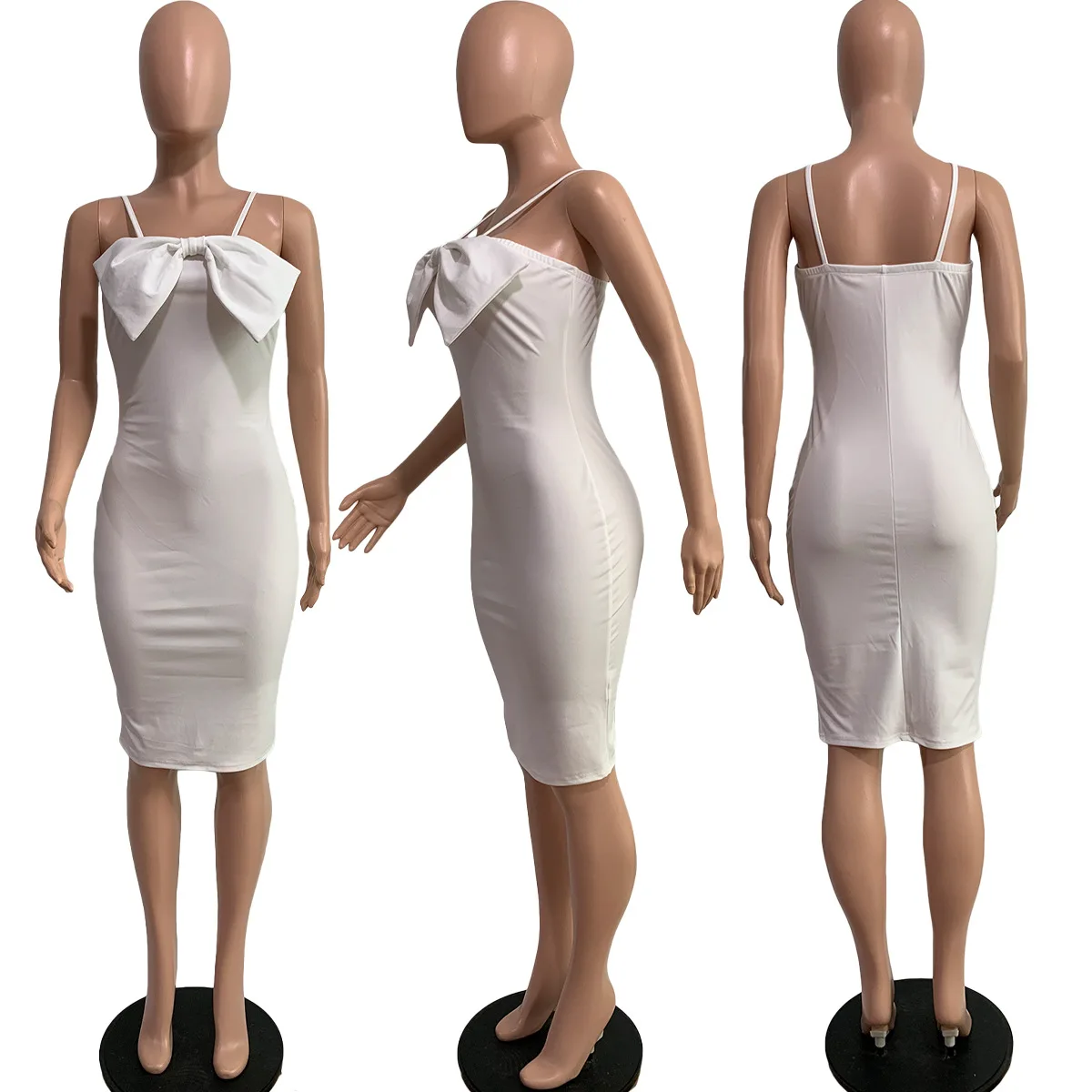 Waterarea Sweet Women Bowknot Front Spaghetti Strap Strapless Bodycon Midi Dress 2023 Sexy Club Party Summer Dresses Streetwear
