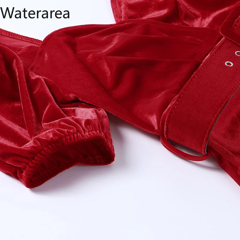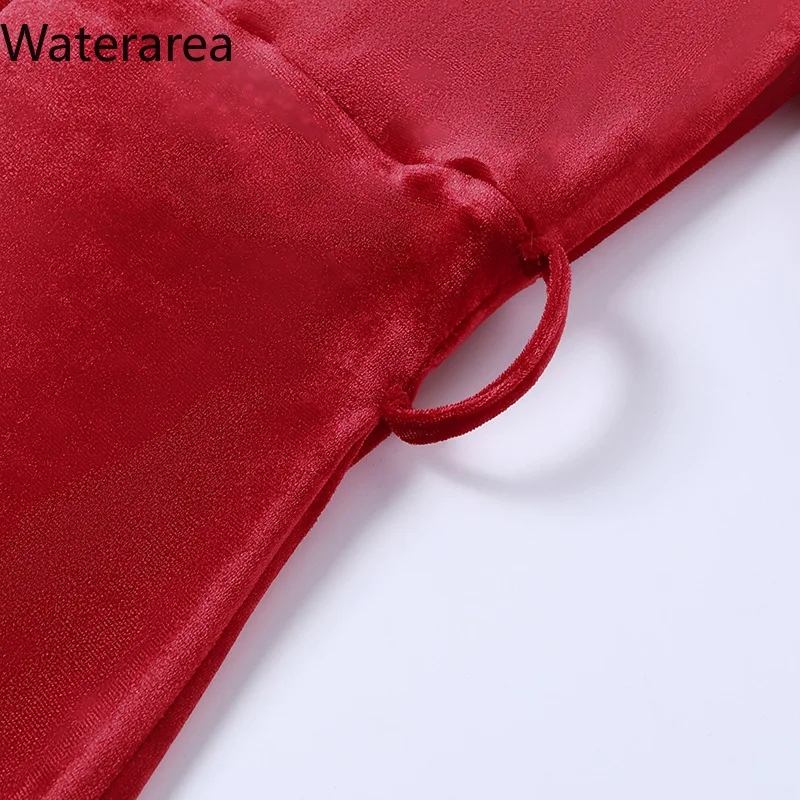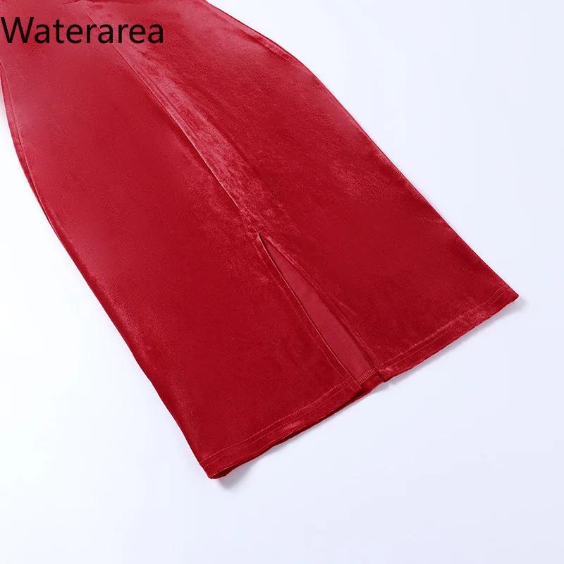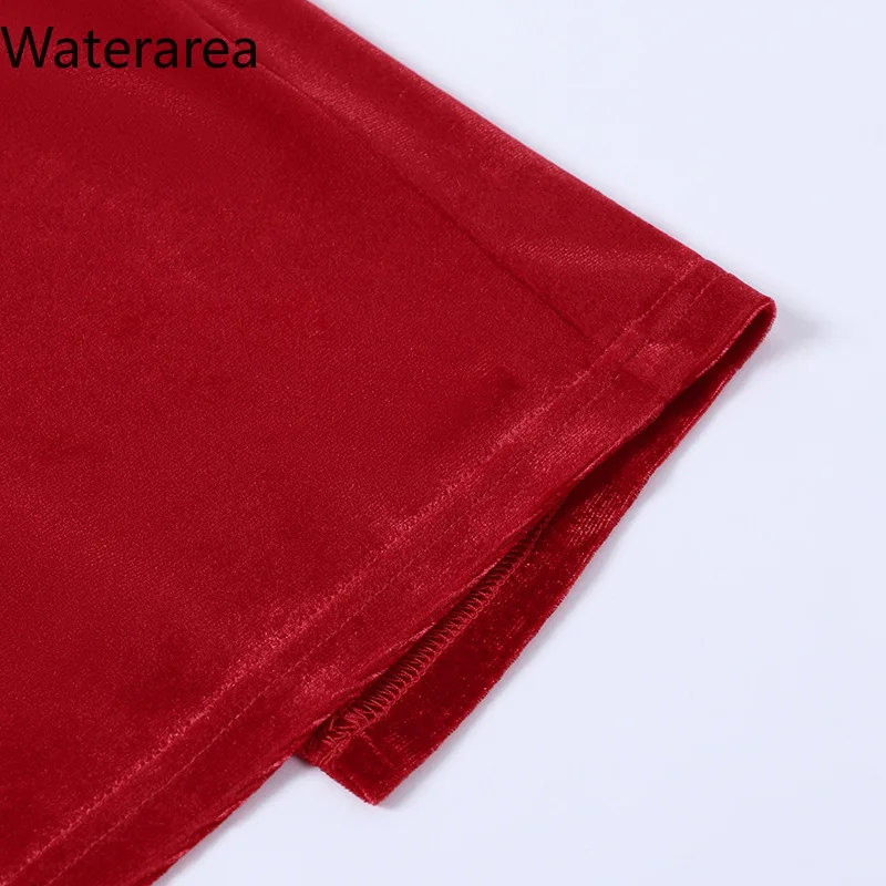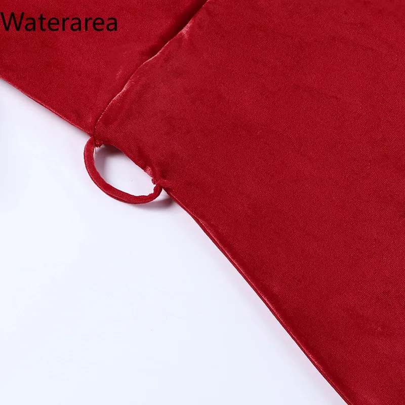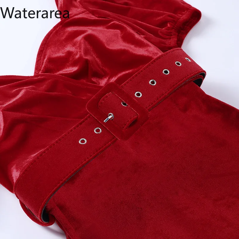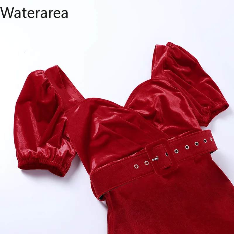 Waterarea Velvet Women Dress for New Year 2022 Fashion Elegants Sexy Fuff Sleeves Midi Dress Evening Party High Split Vestido