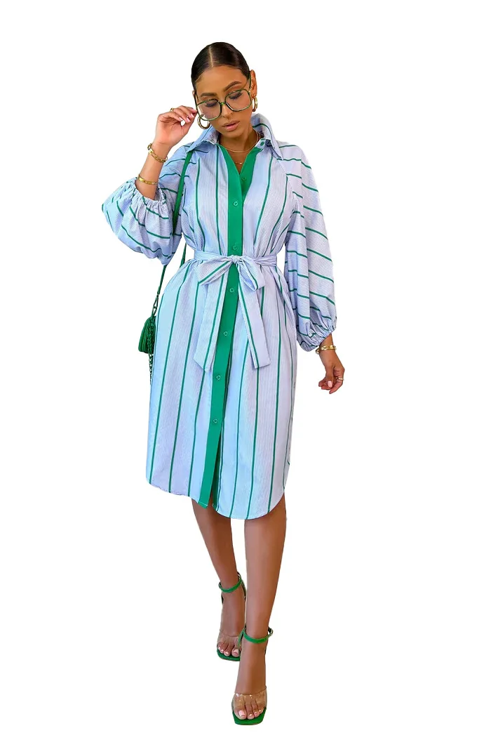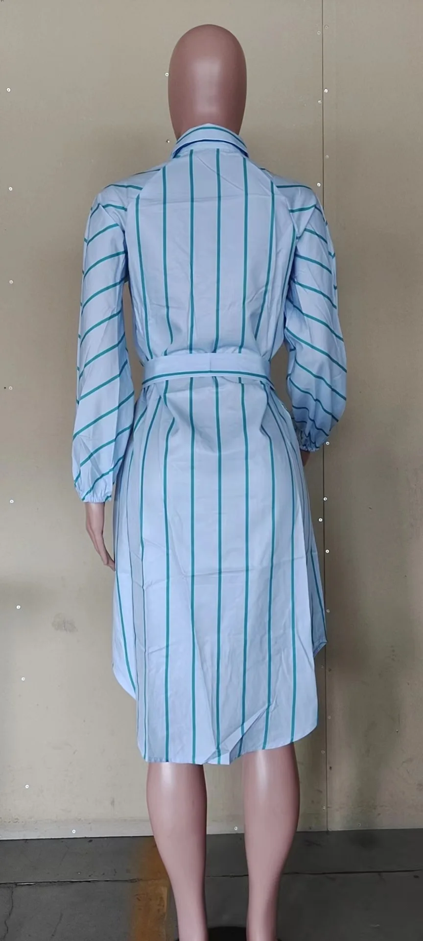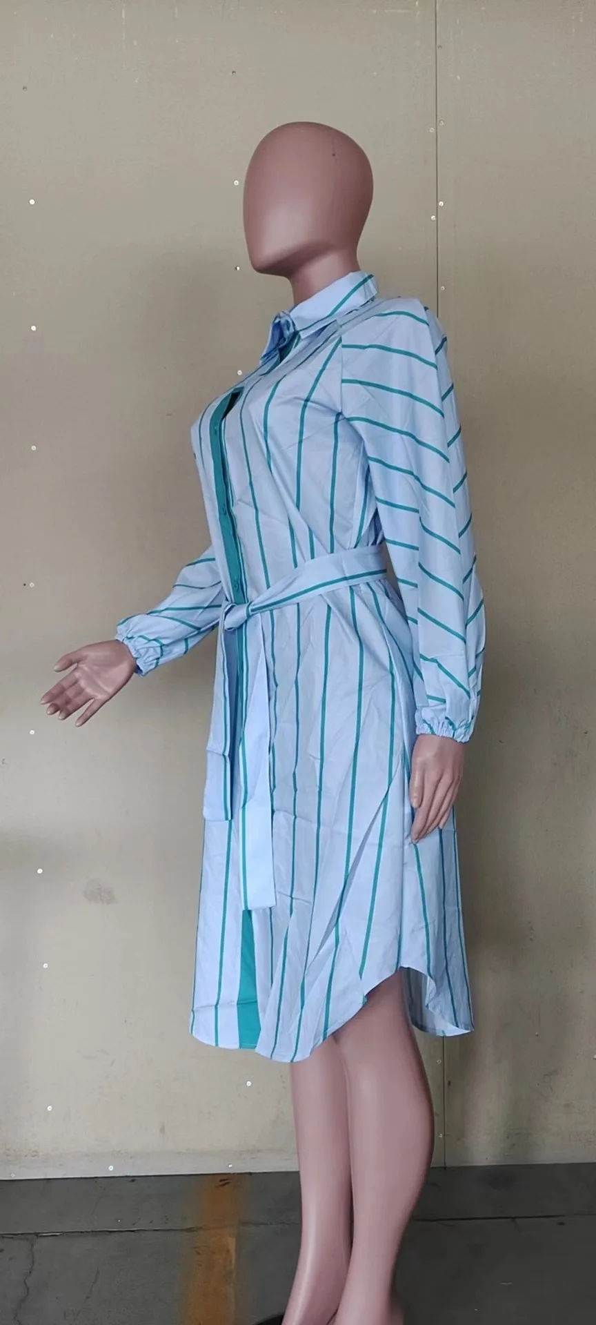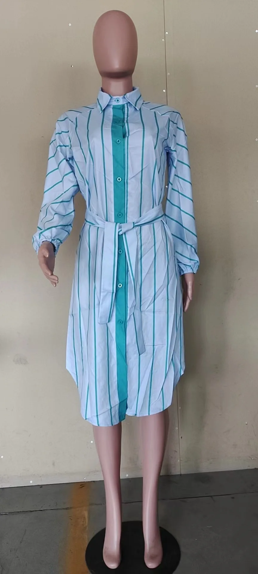 Waterarea Women's Striped Shirt Style Midi Dress Long Sleeve Button Up Elegant Office Lady Straight Dresses 2022 Spring Autumn