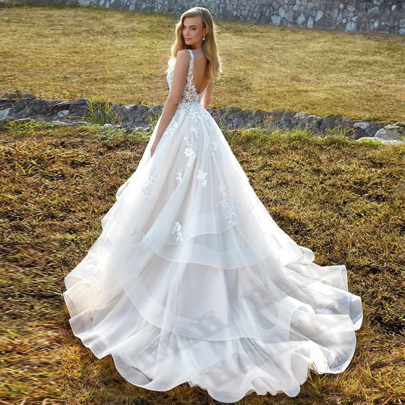VIKTORIA Fashion Aline Wedding Dresses V-neck Custom-Made Court Train Appliques Sleeveless Robe De Mariée Engagement Plus
