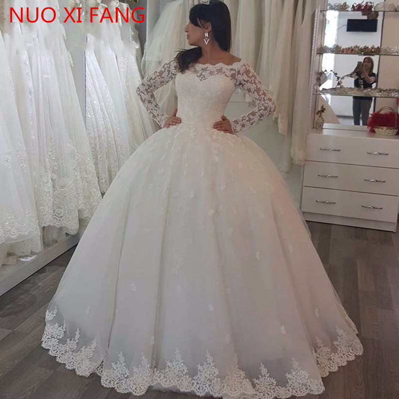 NUOXIFANG 2024 New Vintage Lace Appliques Off The Shoulder Wedding Dresses Ball Gown Long Sleeves Wedding Gowns Bride Dress