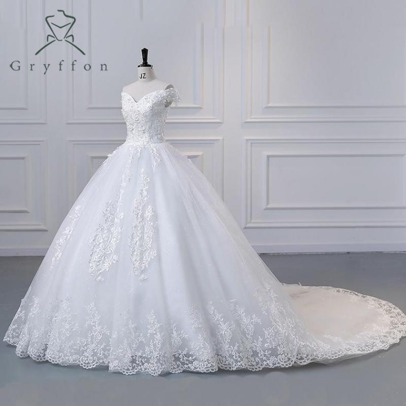 Ball Gown bridal wedding dress lace applique off shoulder bridal dress plus size lace up wedding gown marriage dress