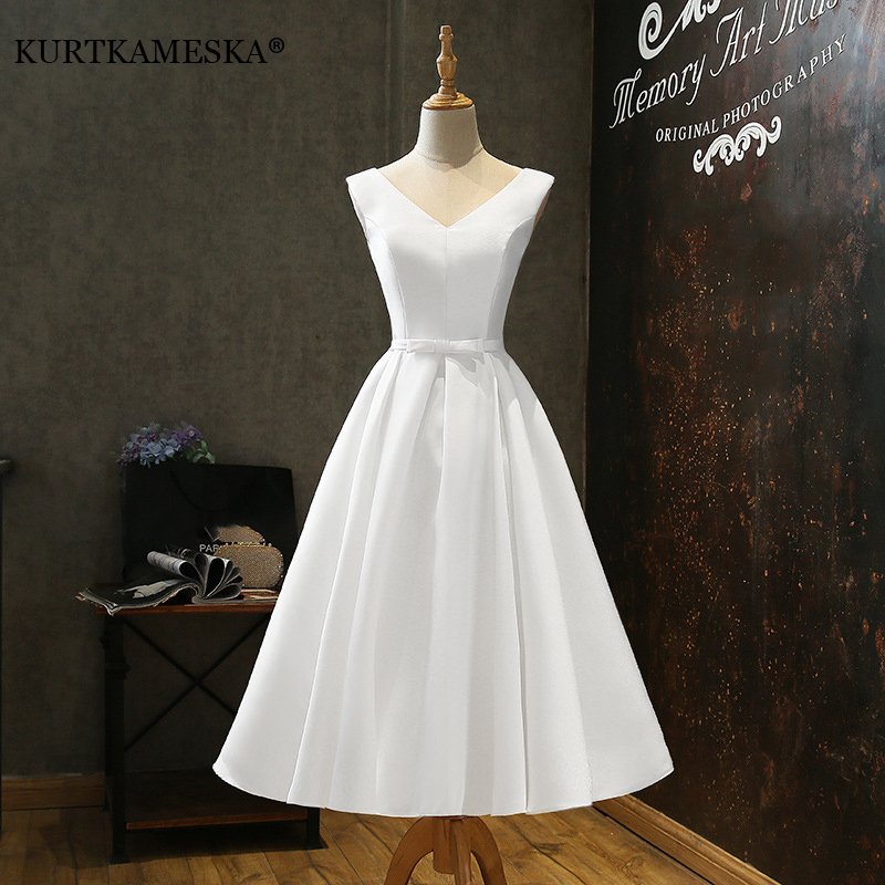 Sexy V Neck White Satin Midi Bride Dress Summer Elegant Prom Evening Wedding Bridesmaid Guest Long Party Dresses for Women 2023