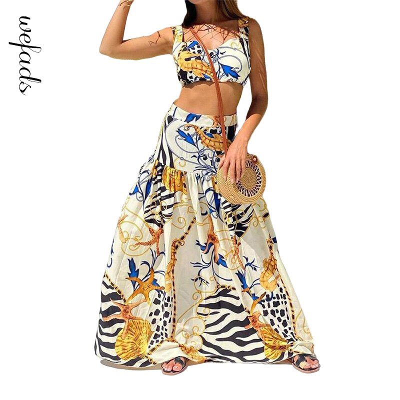 Wefads 2021 Women Print L Dress Two Piece Sexy Dress Maxi Dresses for Women Club Dress Dresses for Women Party Dress