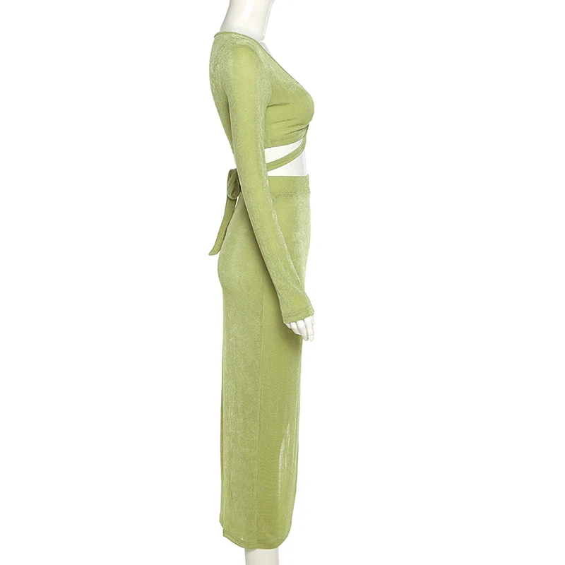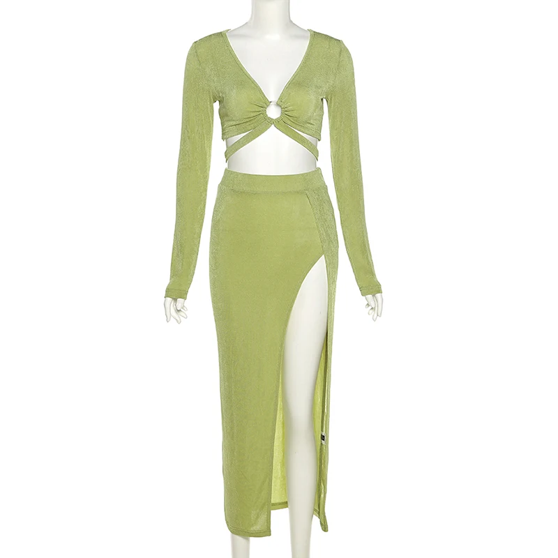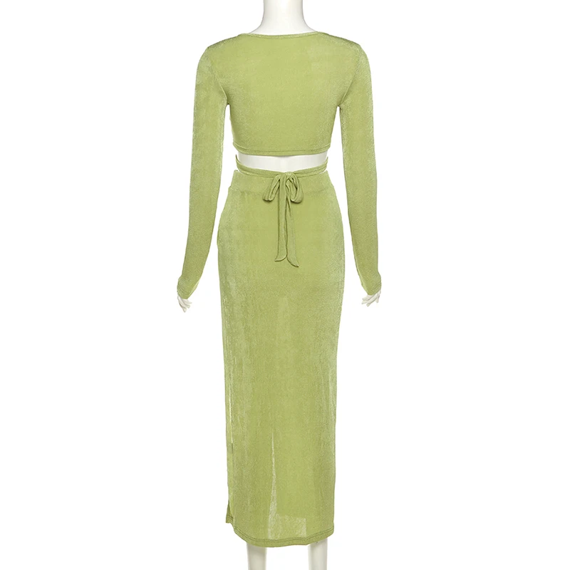 Wefads Skirt Set Autumn New Women’s Long-sleeved V-neck T-shirt Fashion High-waisted Leg-length Skirt Casual Suit Sexy Dress