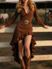 Western Retro Solid Ruffle Irregular Dress Women Spring Lapel Collar Slim Party Long Dress Vintage Long Sleeve Button Maxi Dress