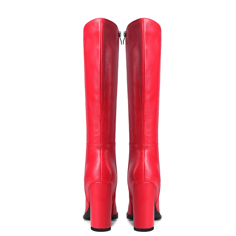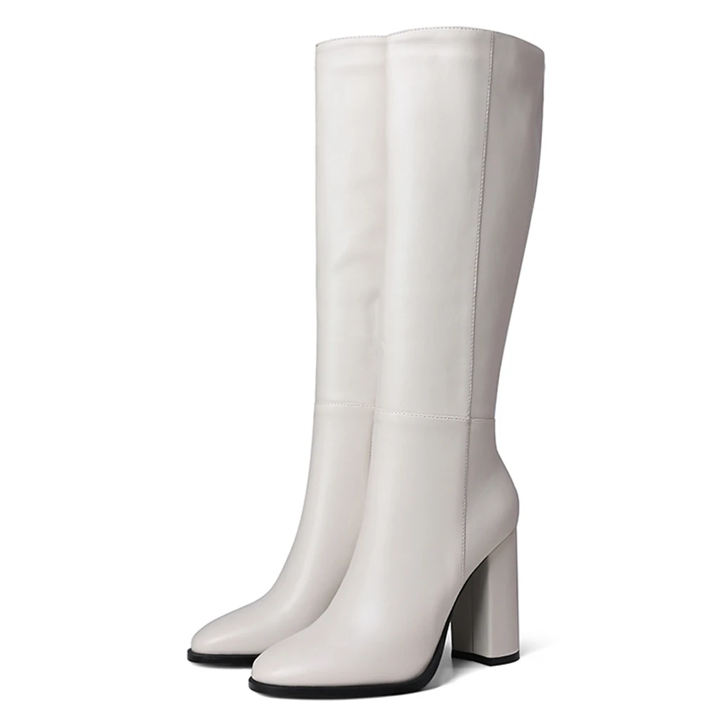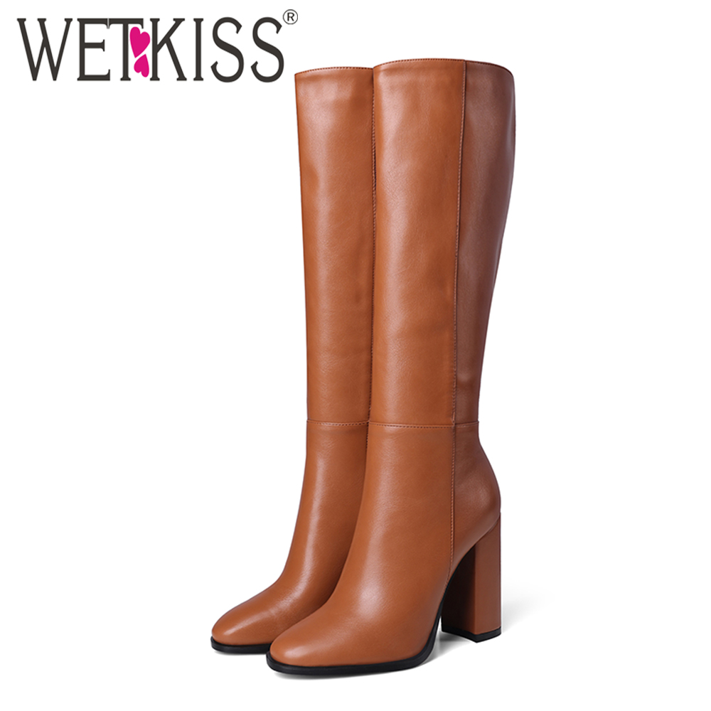 WETKISS Block Heel Knee Boots Women Round Toe Knight Thick High Heels Shoes Woman Keep Warm Autumn Winter Boots Big Size 43