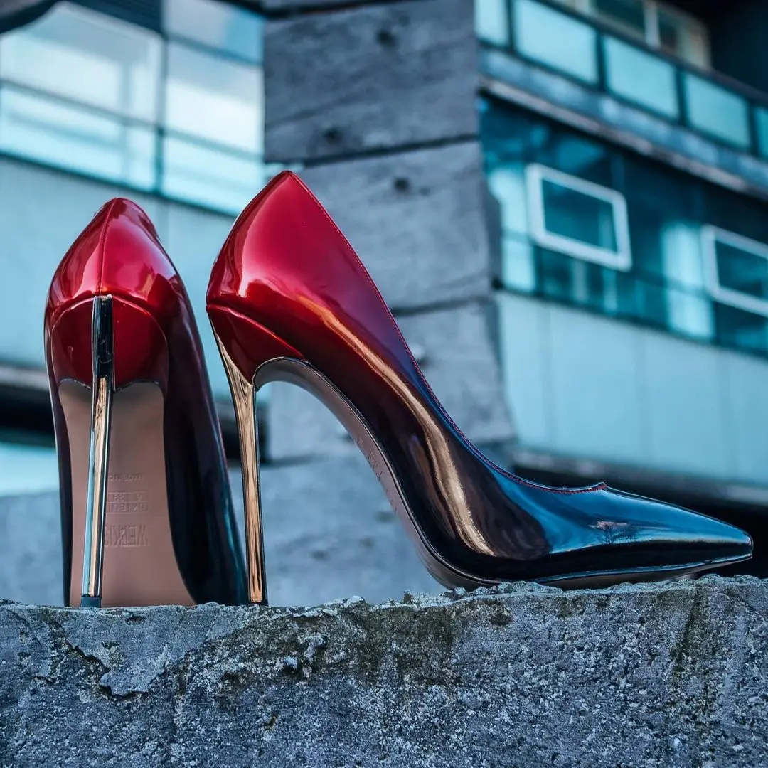 WETKISS Ladies Gradient Stiletto Pumps Thin High Red Heels Court Shoes Woman Basic Fetish Sexy Pumps Dress Party Wedding Shoes