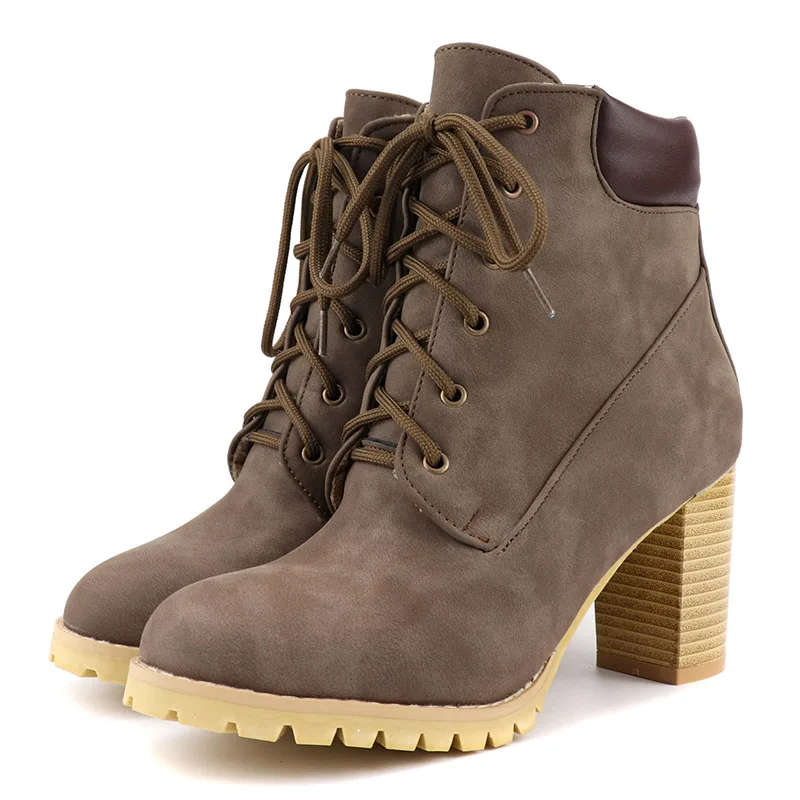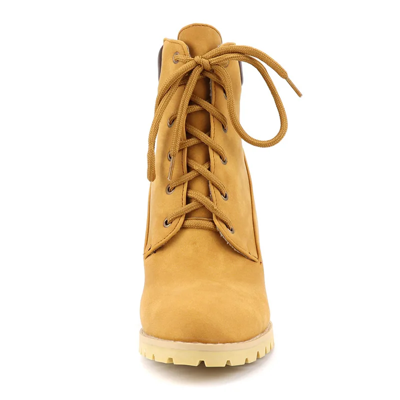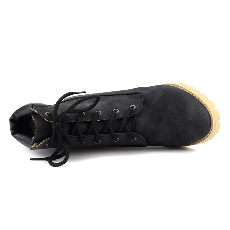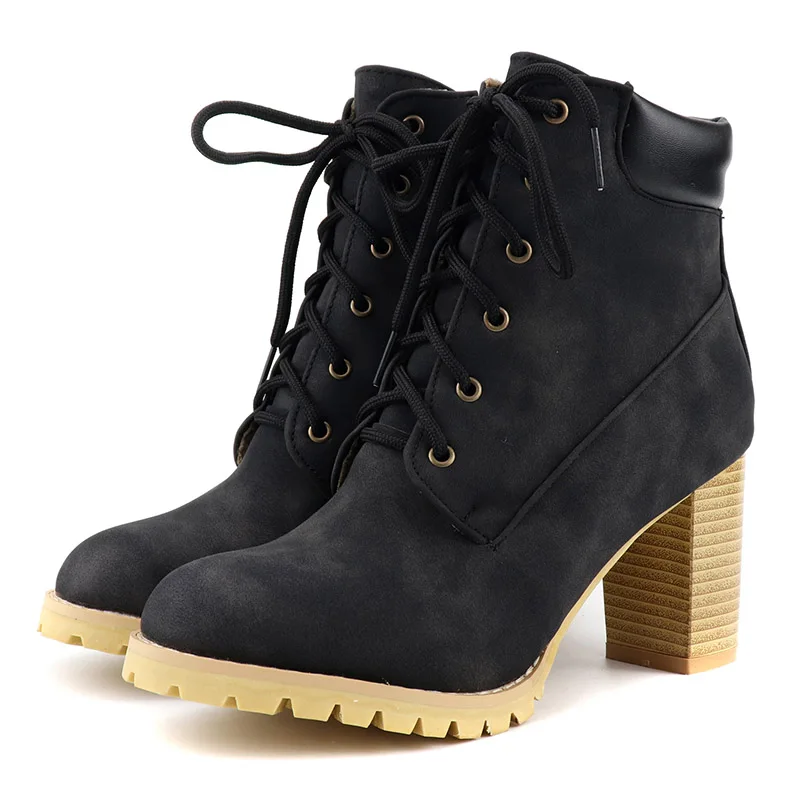 WETKISS Motorcycle Boots Women Ankle Boot Female High Heels Shoes Ladies Lace Up Round Toe Shoes Women Winter Big Size 48