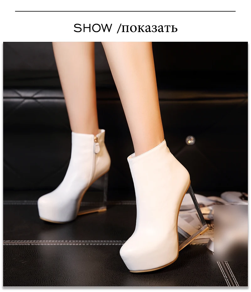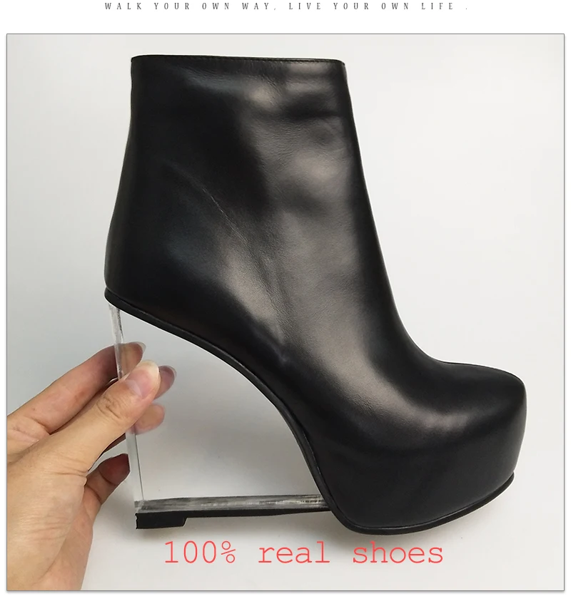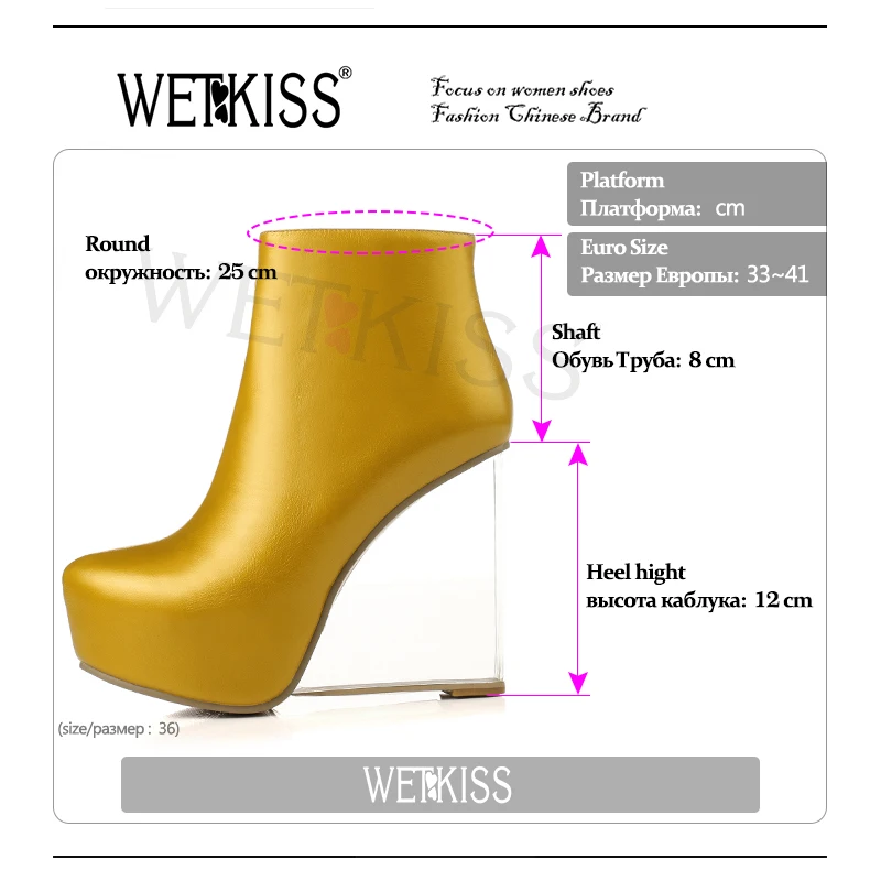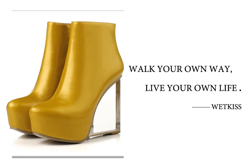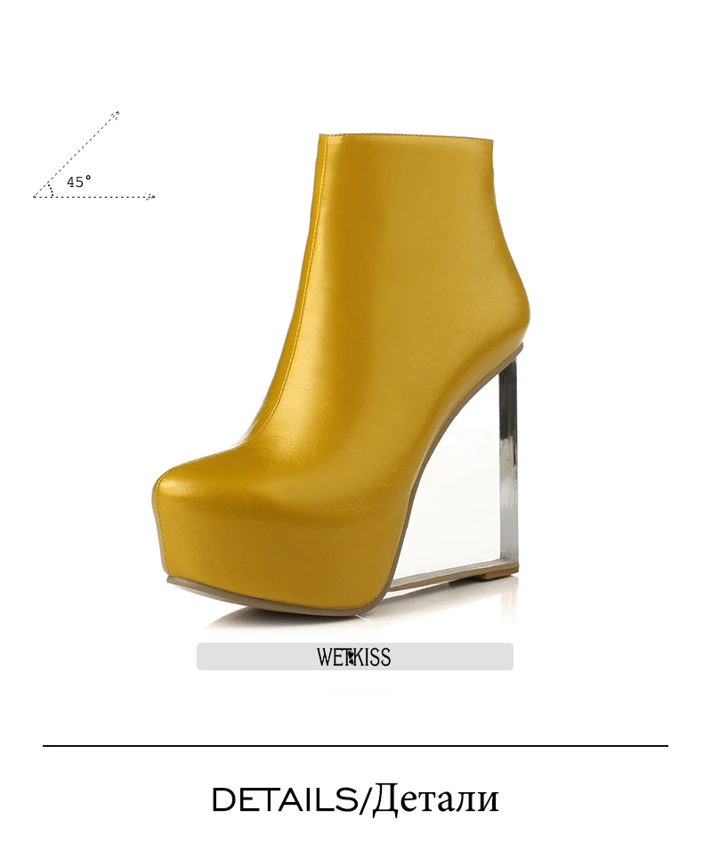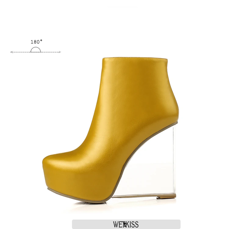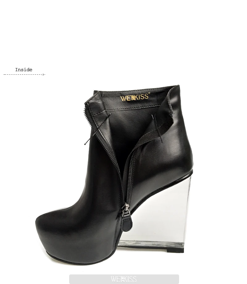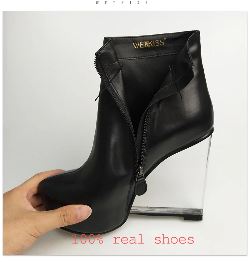WETKISS Transparent Heels Shoes New Arrival Women Ankle Boots Round toe Side Zip Platform Fashion Boots Women Wedges Shoes