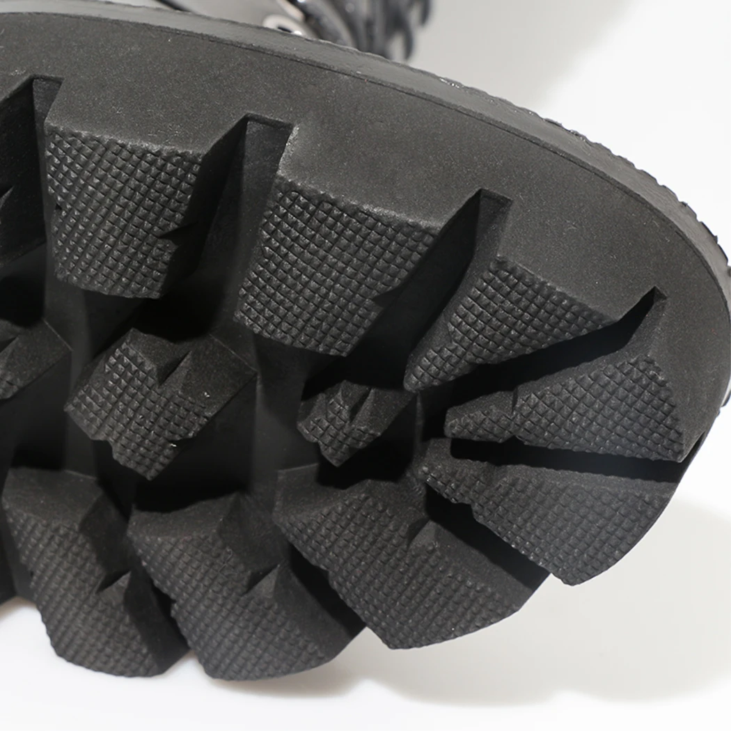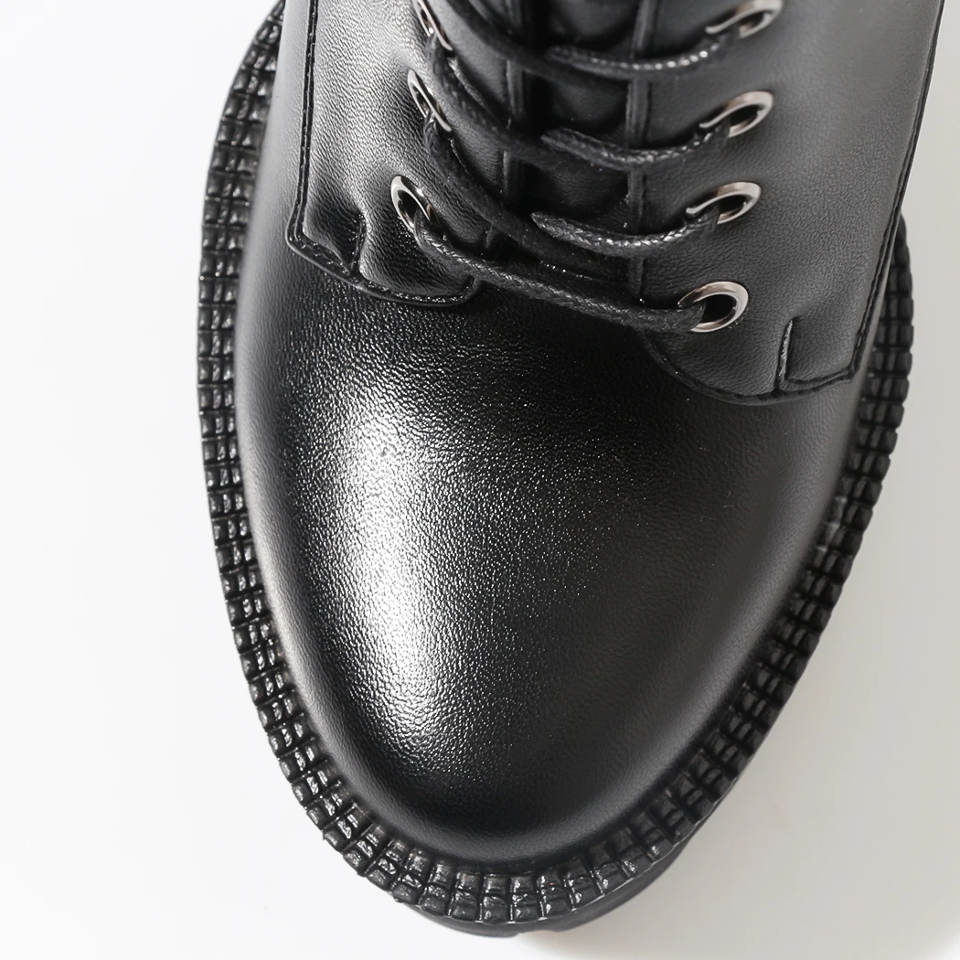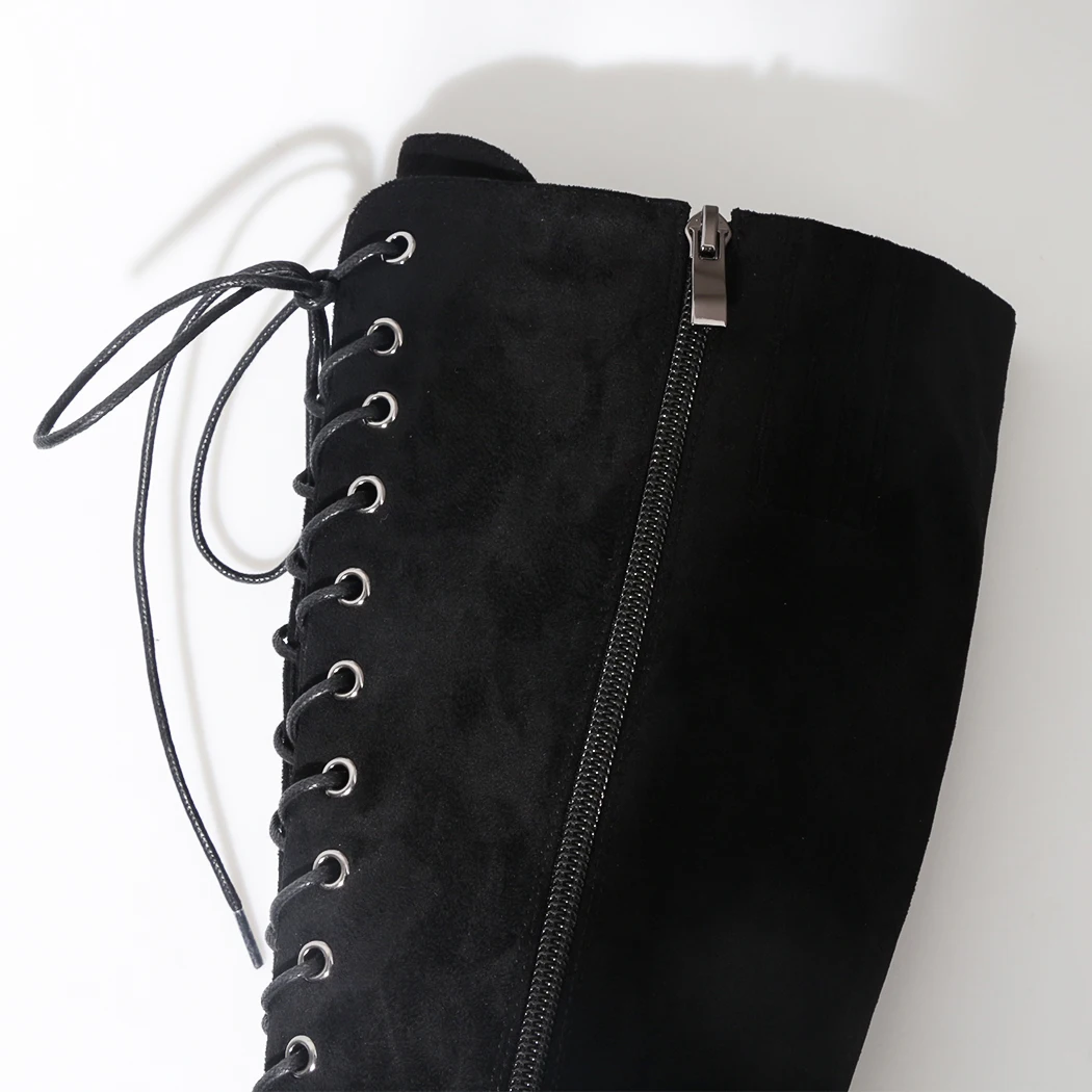 WETKISS Women Patent Leather Knee High Boots Slip On Platform Thick High Heels Cross Tied Zip Shoes Round Toe High Boot
