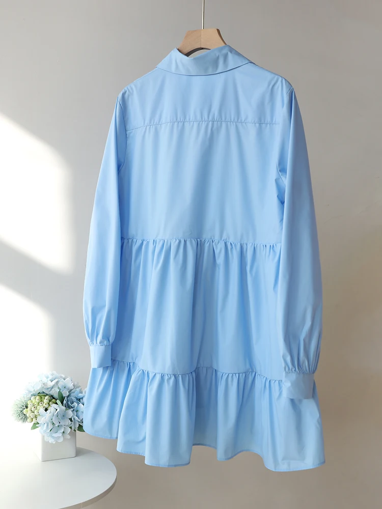 White Women’s Shirt Dress with Collar Vintage Long Sleeve Oversize Blue Dresses Loose Elegant Buttons Shirt Dress for Women 2024