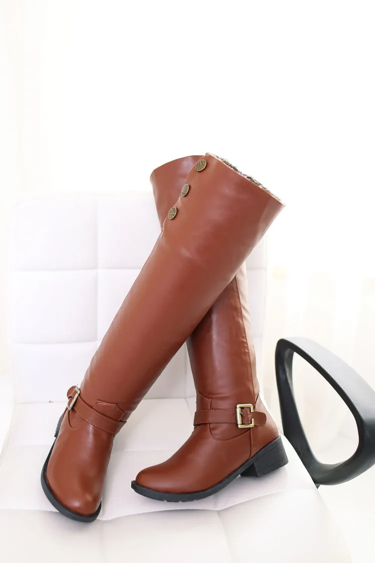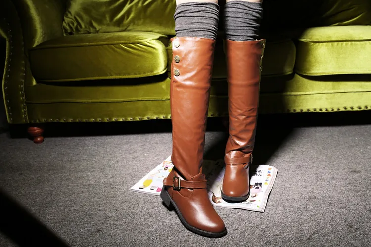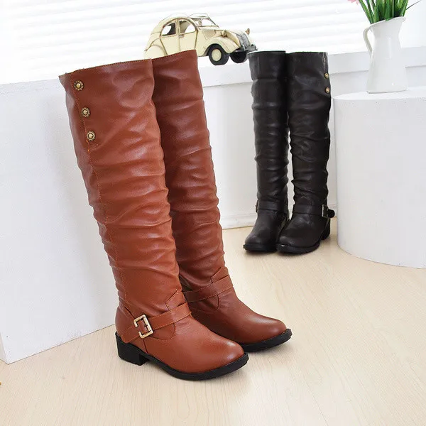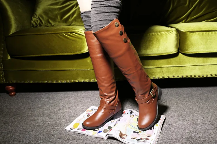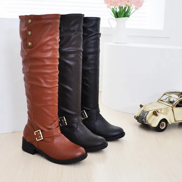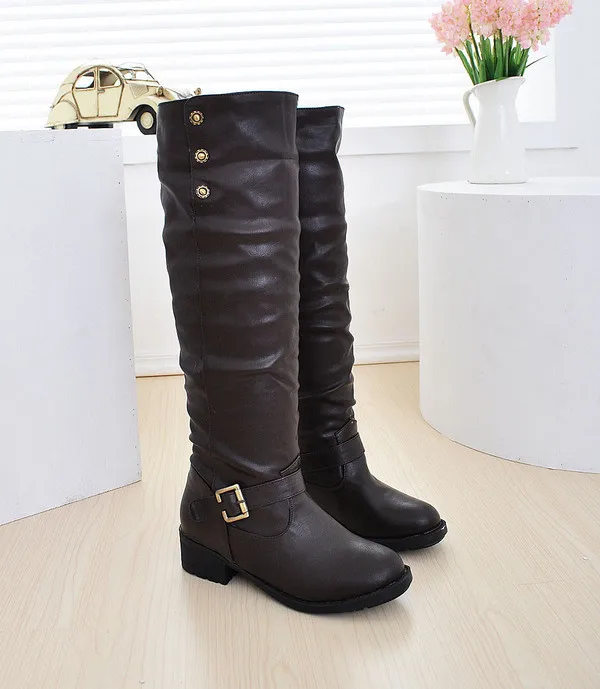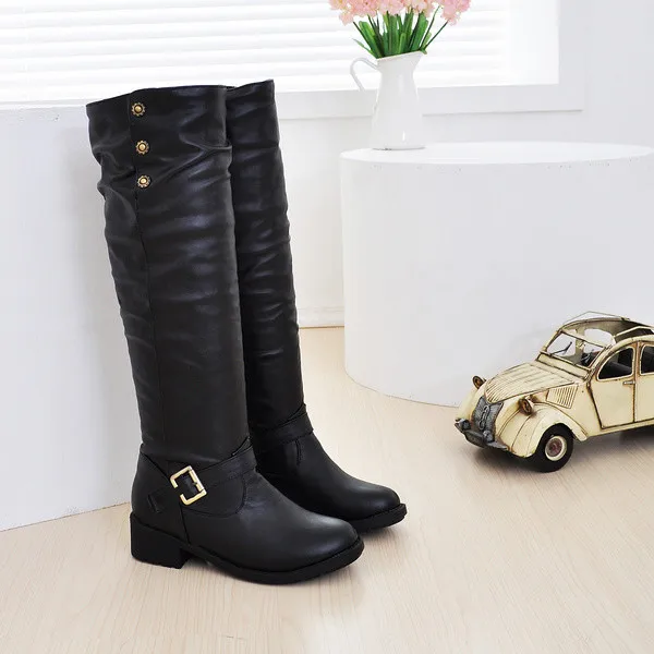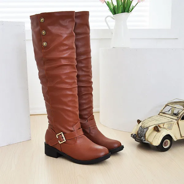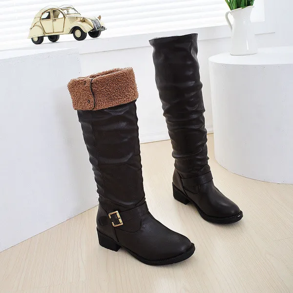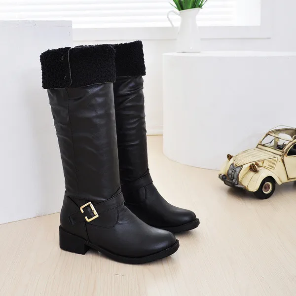 Winter Boots Real 2016 Big Size 34-43 Women Knee High Boots Sexy Chunky Round Toe Spring Autumn Shoes Less Platform 02