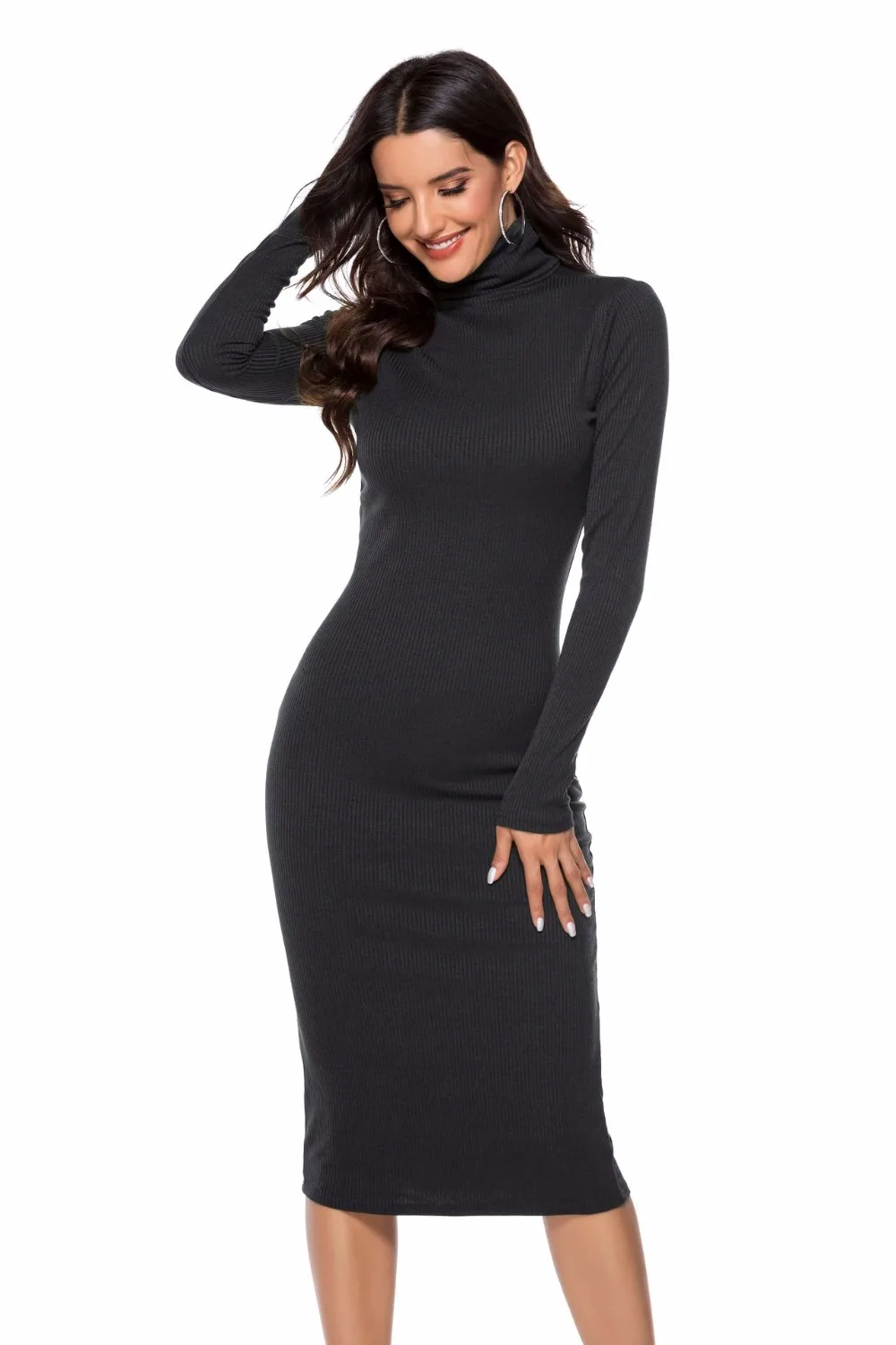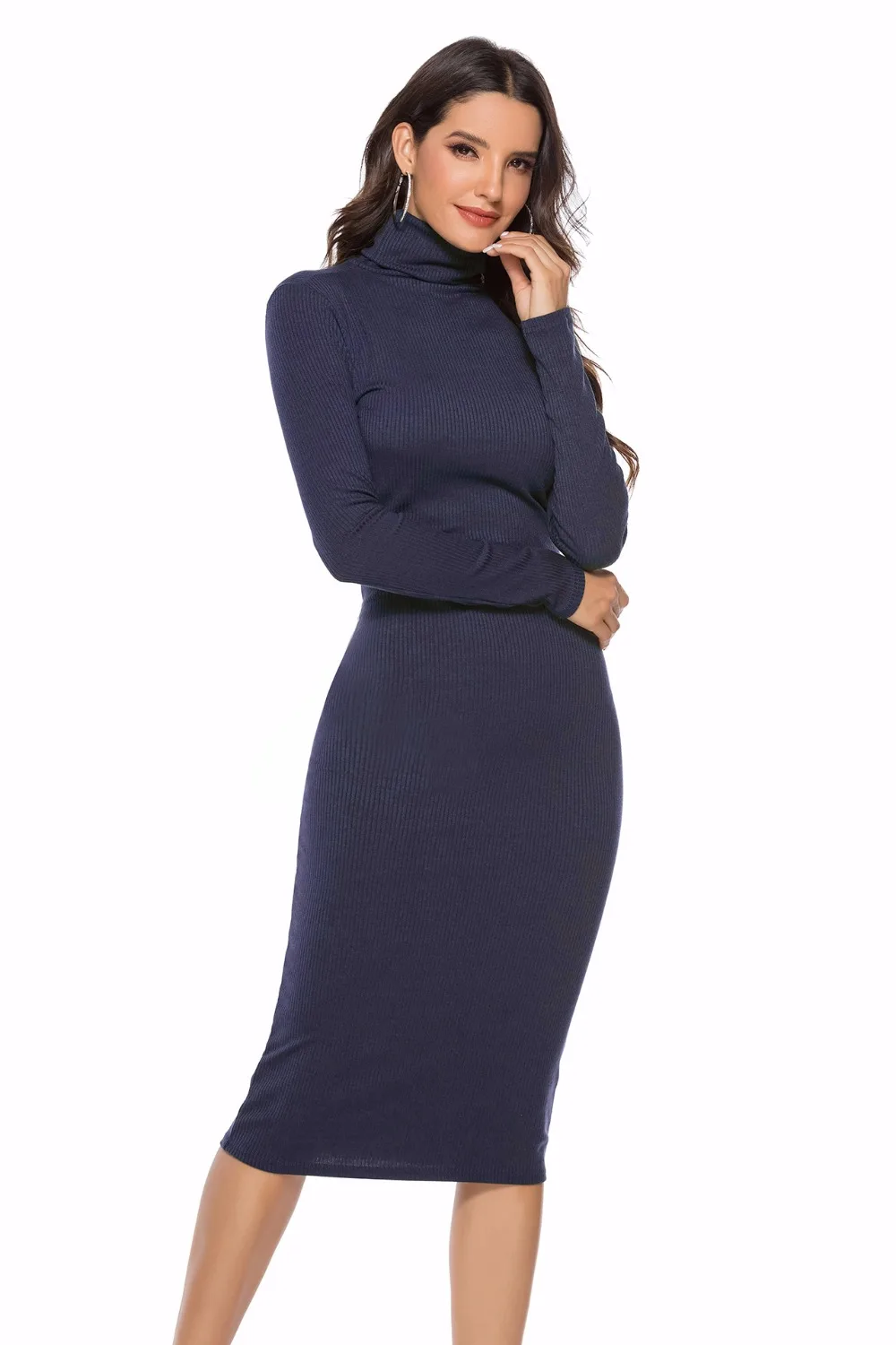Winter Keep Warm Women Sweater Dress Long Sleeve High Neck Slim Pencil Dress Office Lady Knitted Dress Stretch Female S-New
