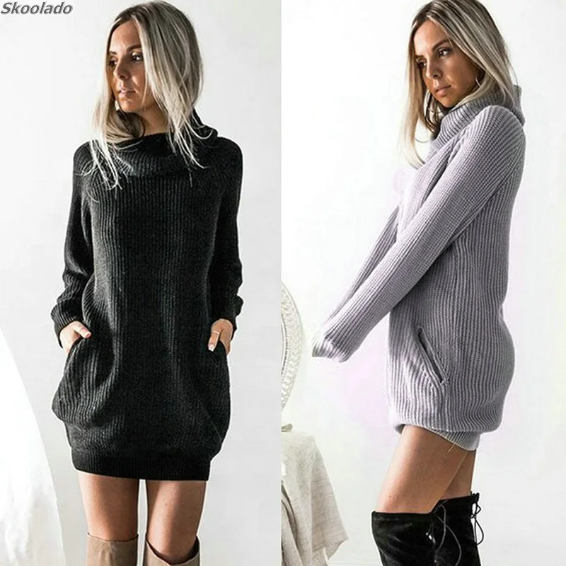 winter women sweater long knitting shirt lady good dresses casual loose fashion European hot sale women dresses warm clothes