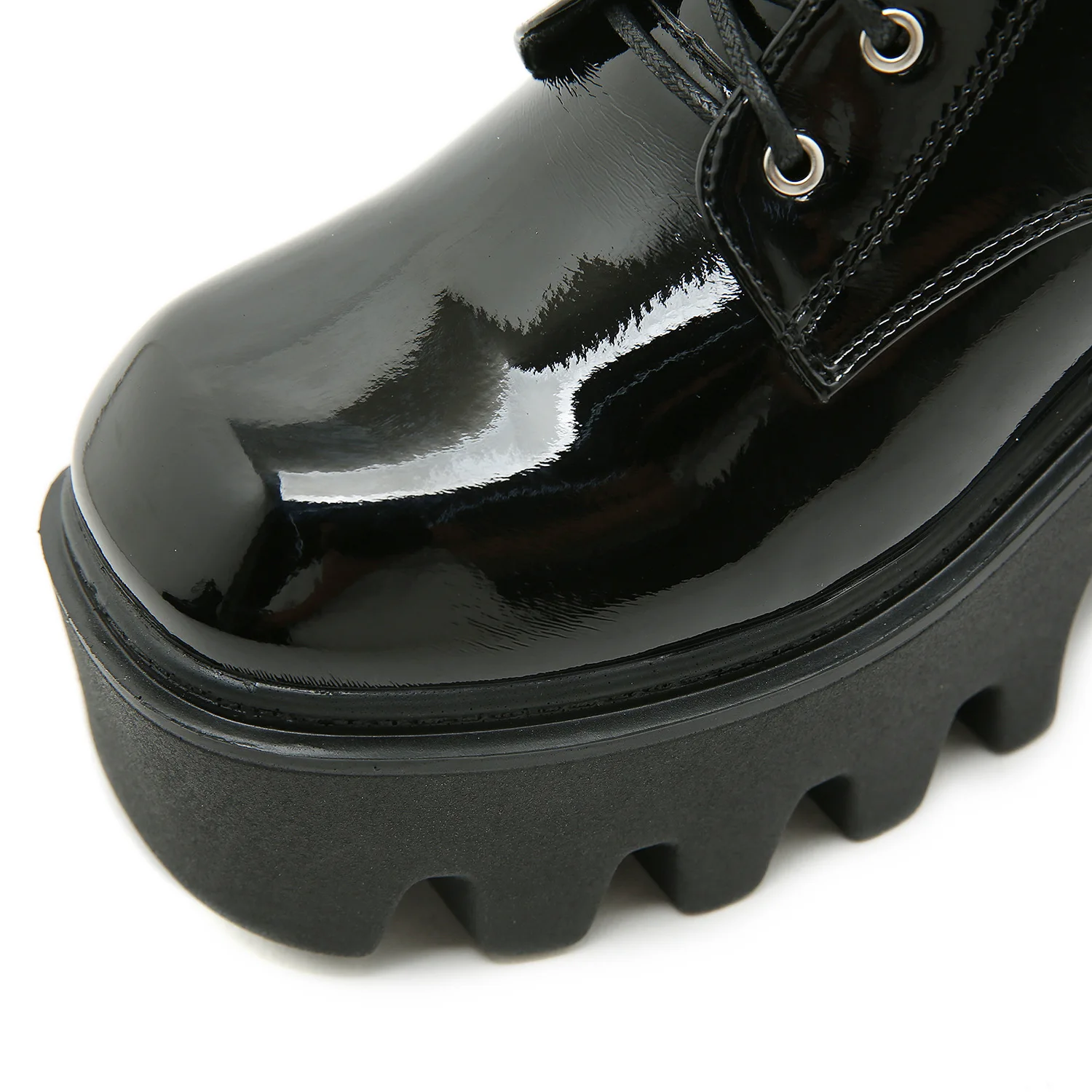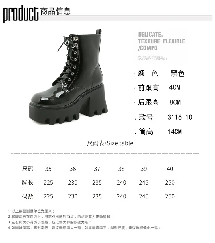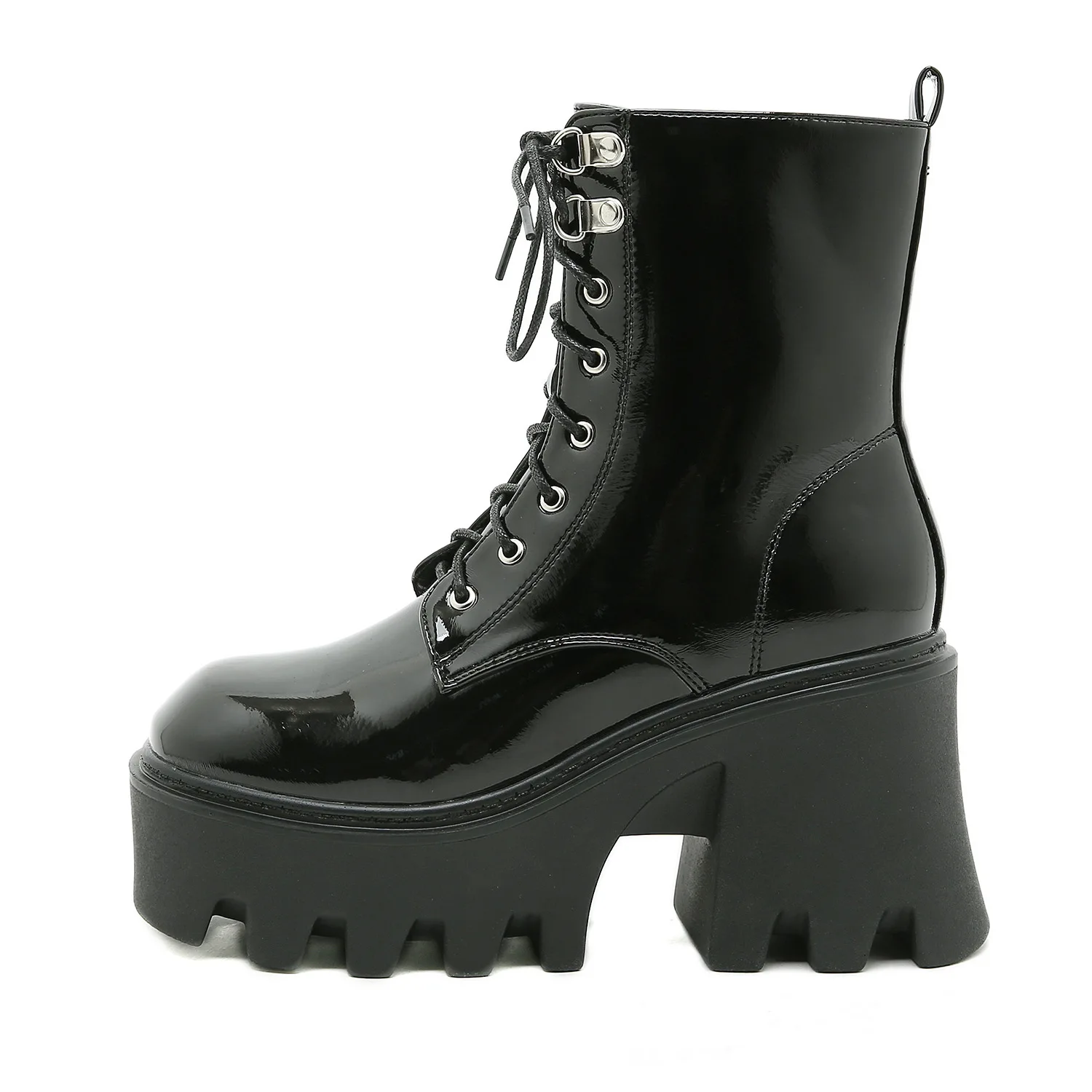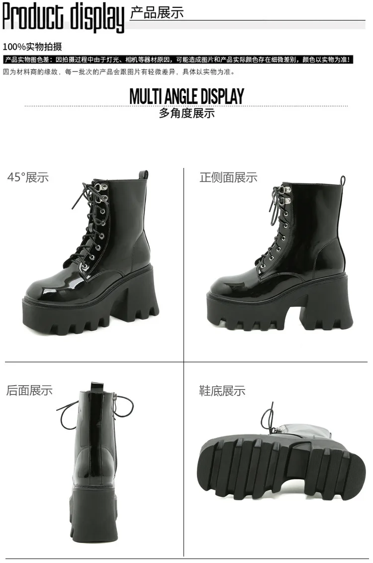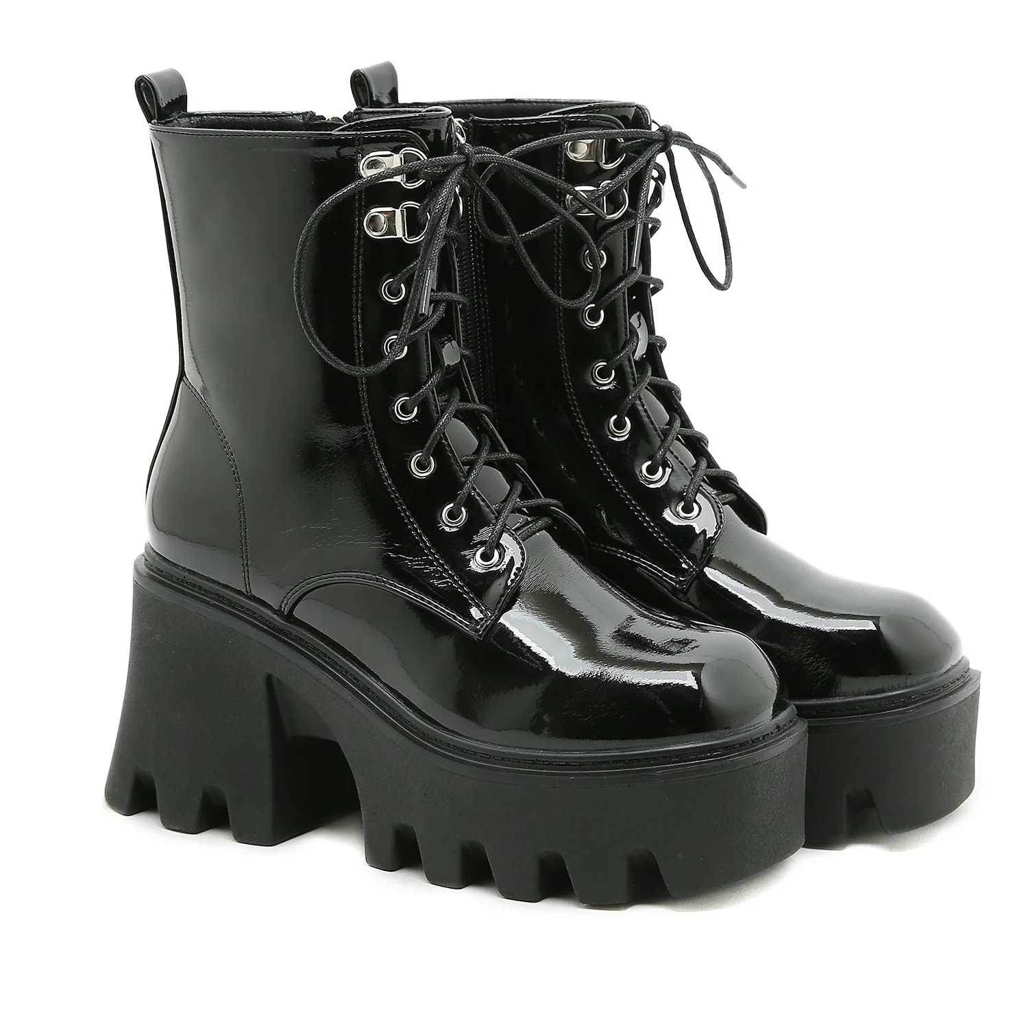 Woman Lace Autumn Boots Womens Ladies Chunky Wedge Platform Black Patent Leather Ankle Boots Punk Goth New Arrival588