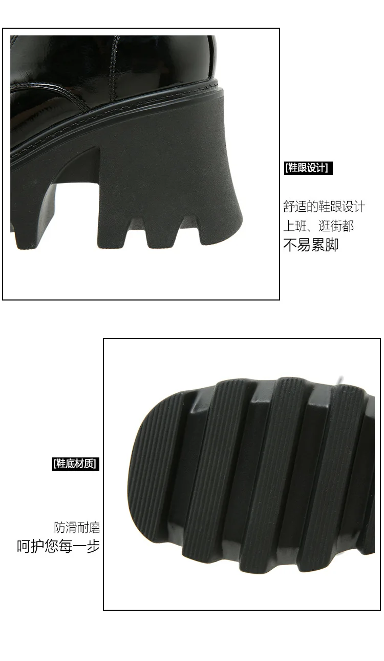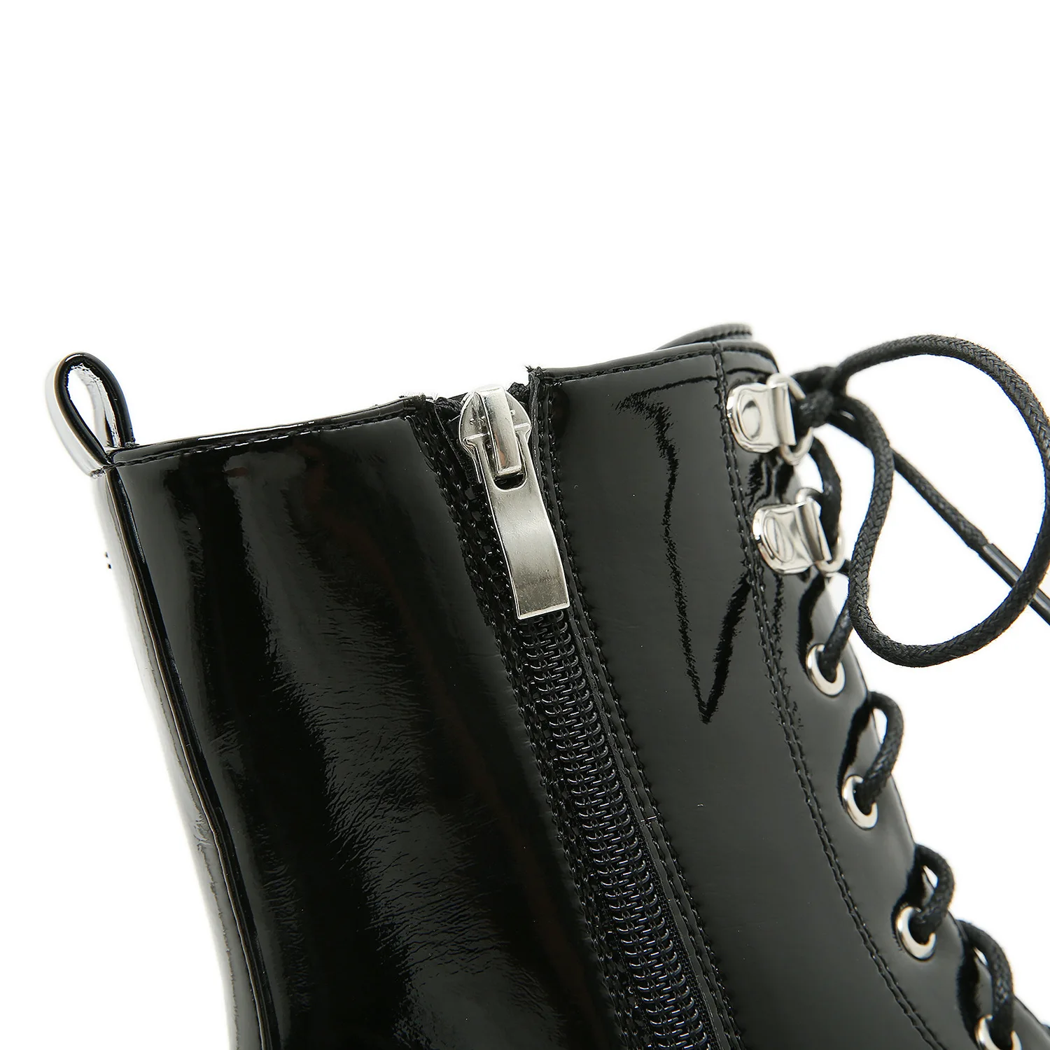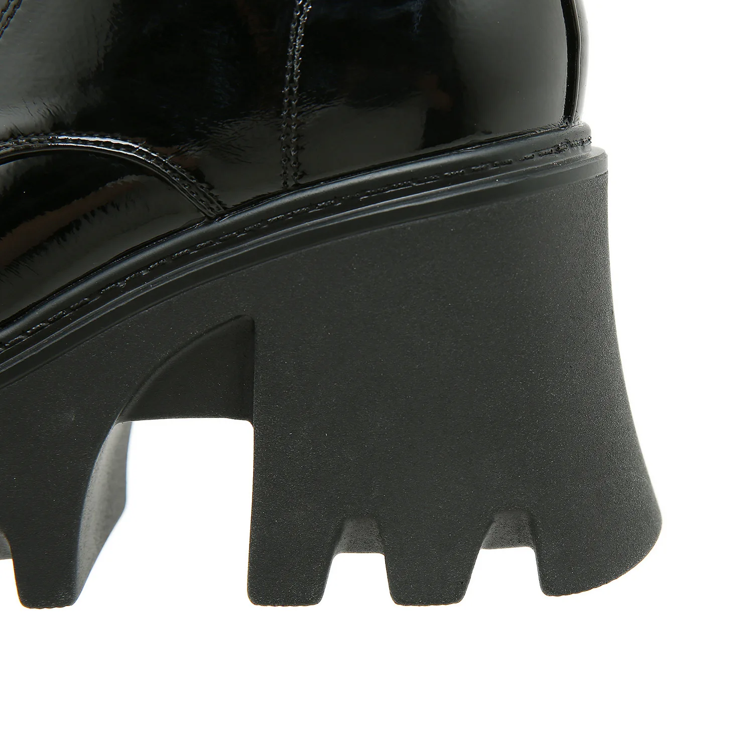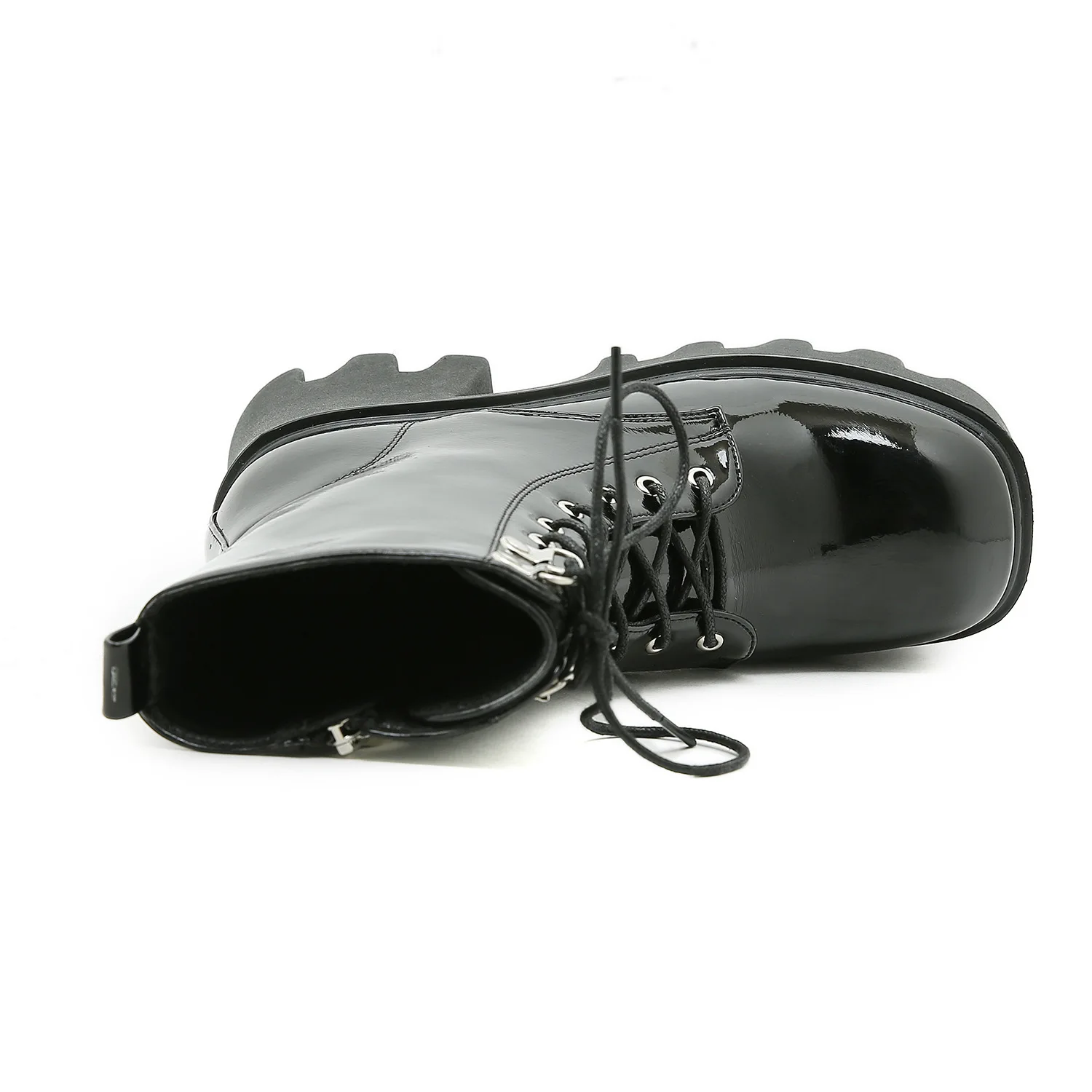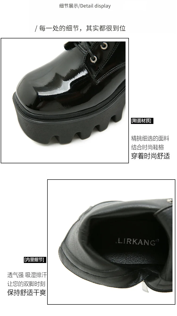 Woman Lace Autumn Boots Womens Ladies Chunky Wedge Platform Black Patent Leather Ankle Boots Punk Goth New Arrival588