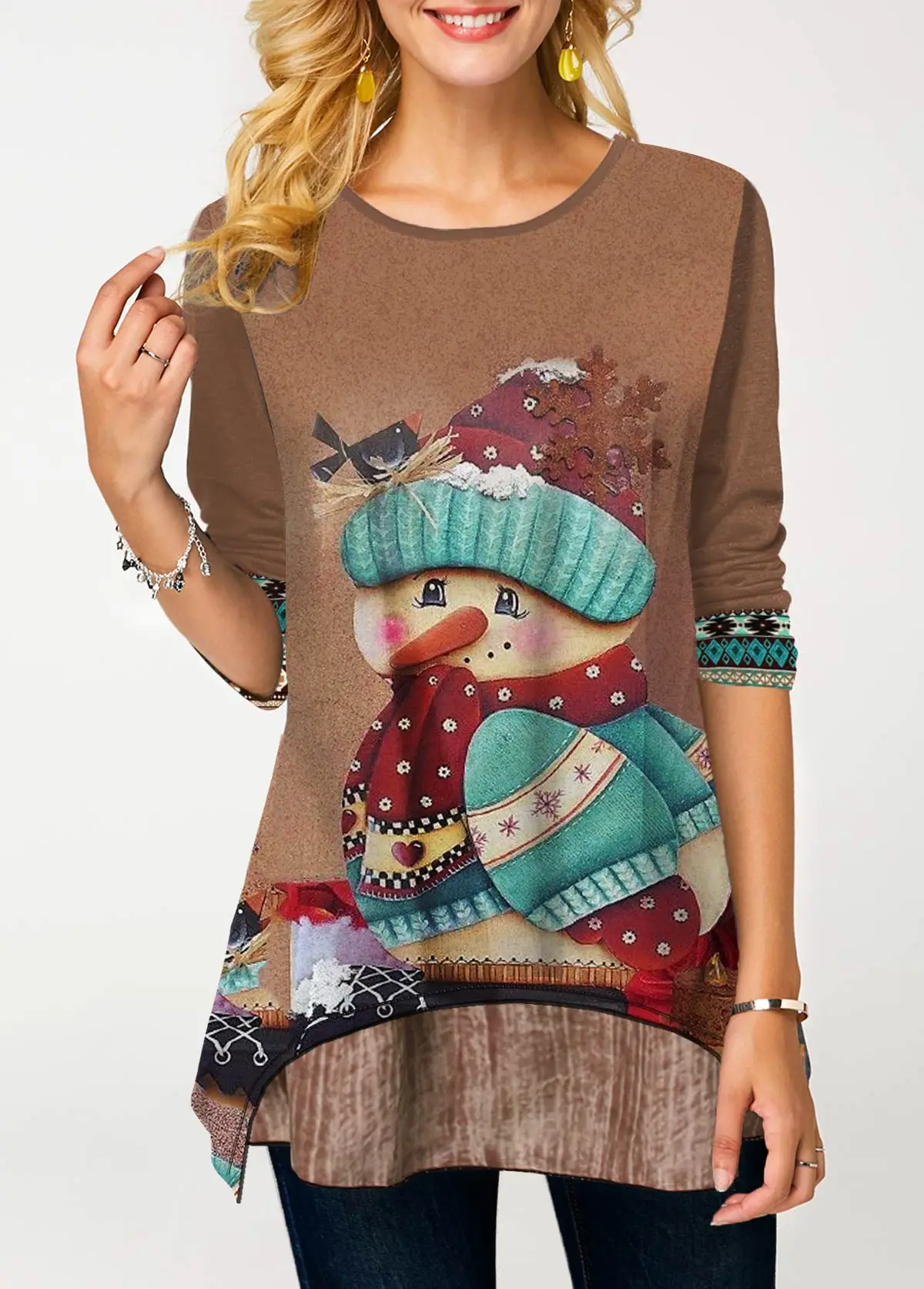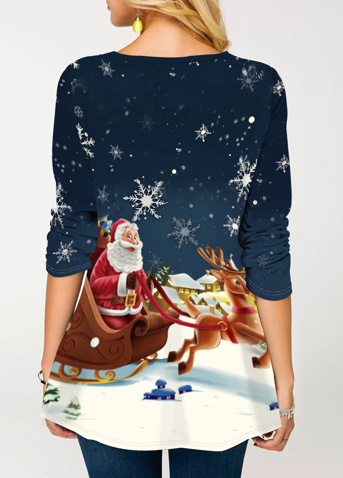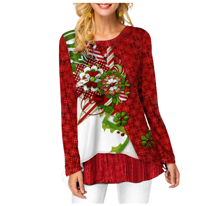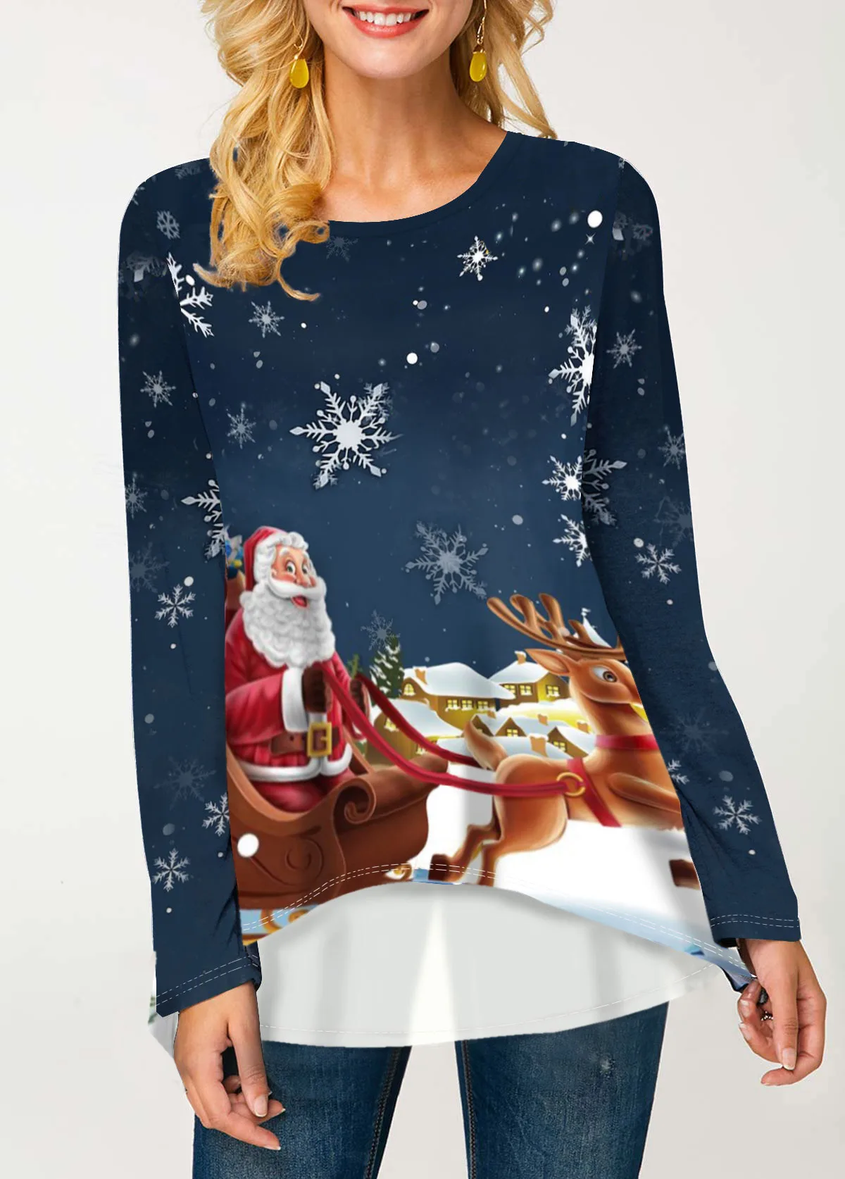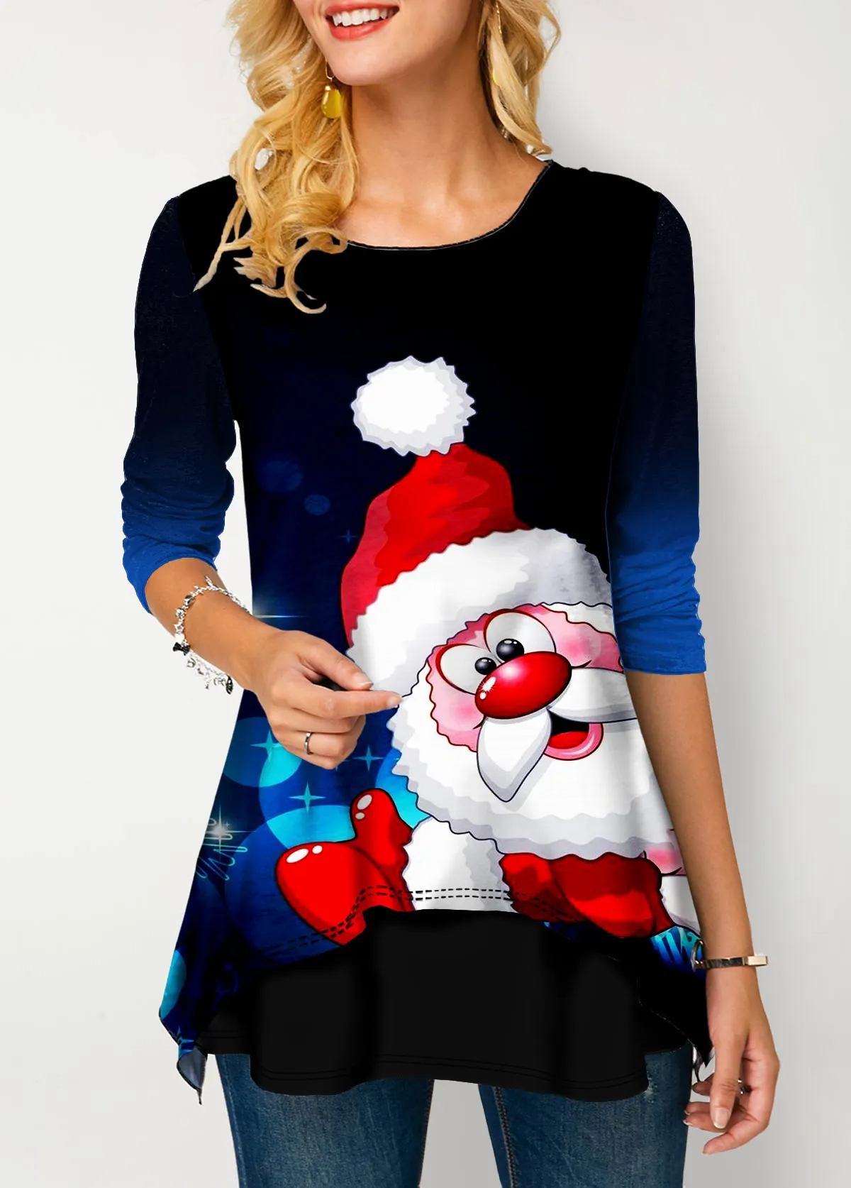 Woman Loose Blouse 2021 Autumn Fashion O-neck Long Sleeve Santa Claus Printed Pullover Ladies Tops Vintage Casual Street Tops