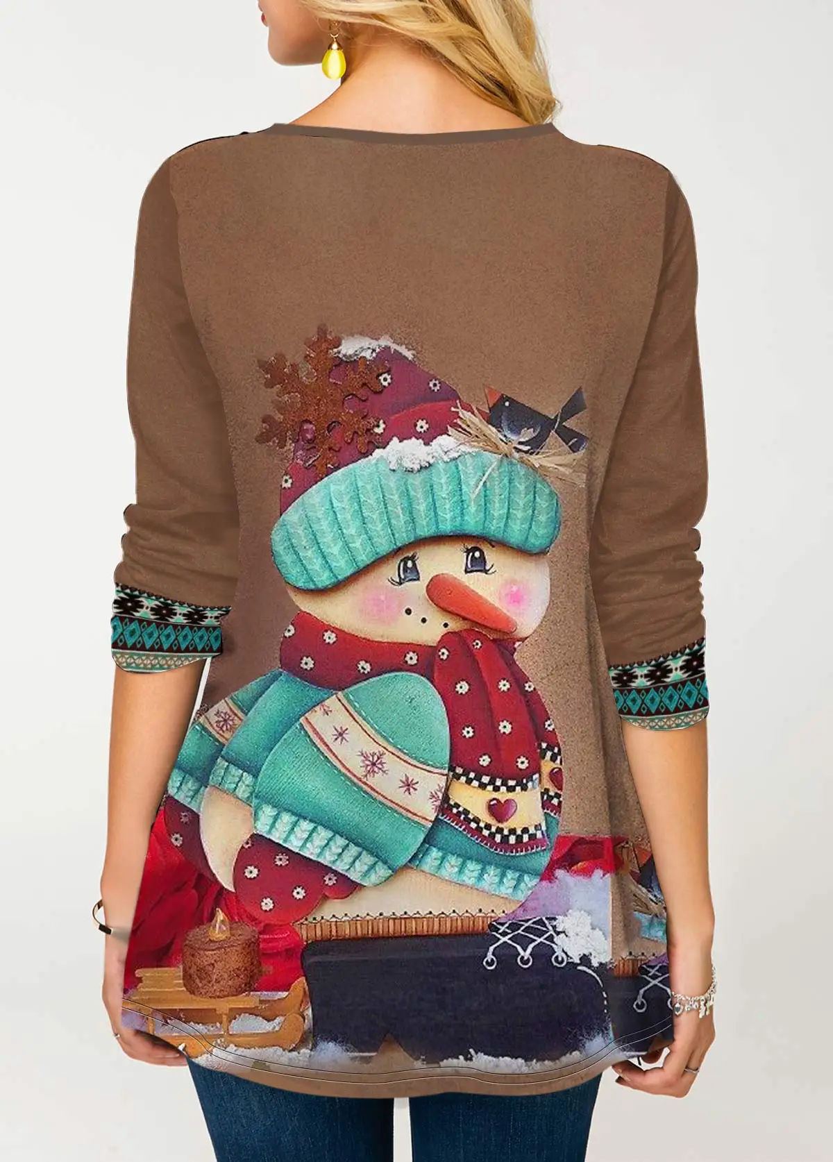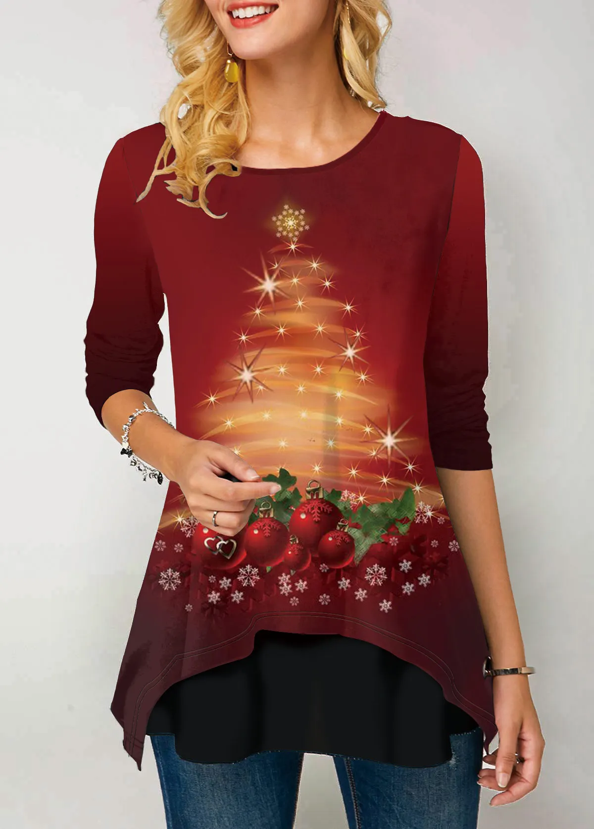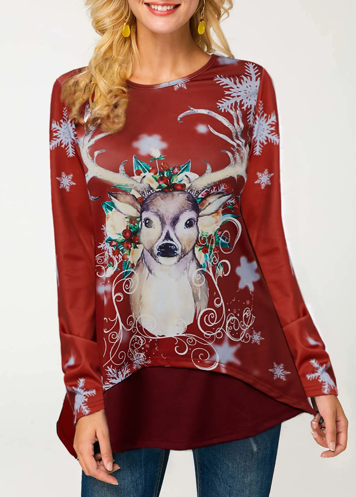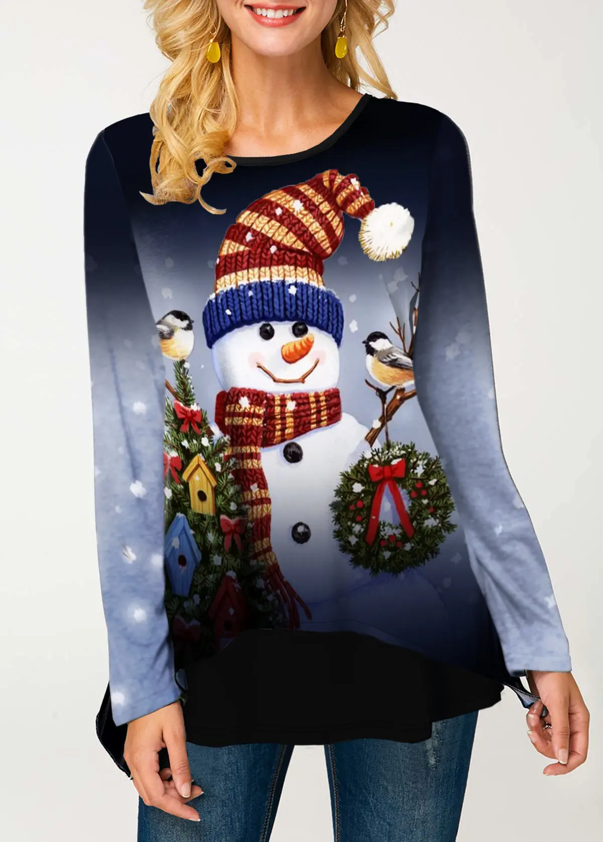 Woman Loose Blouse 2021 Autumn Fashion O-neck Long Sleeve Santa Claus Printed Pullover Ladies Tops Vintage Casual Street Tops