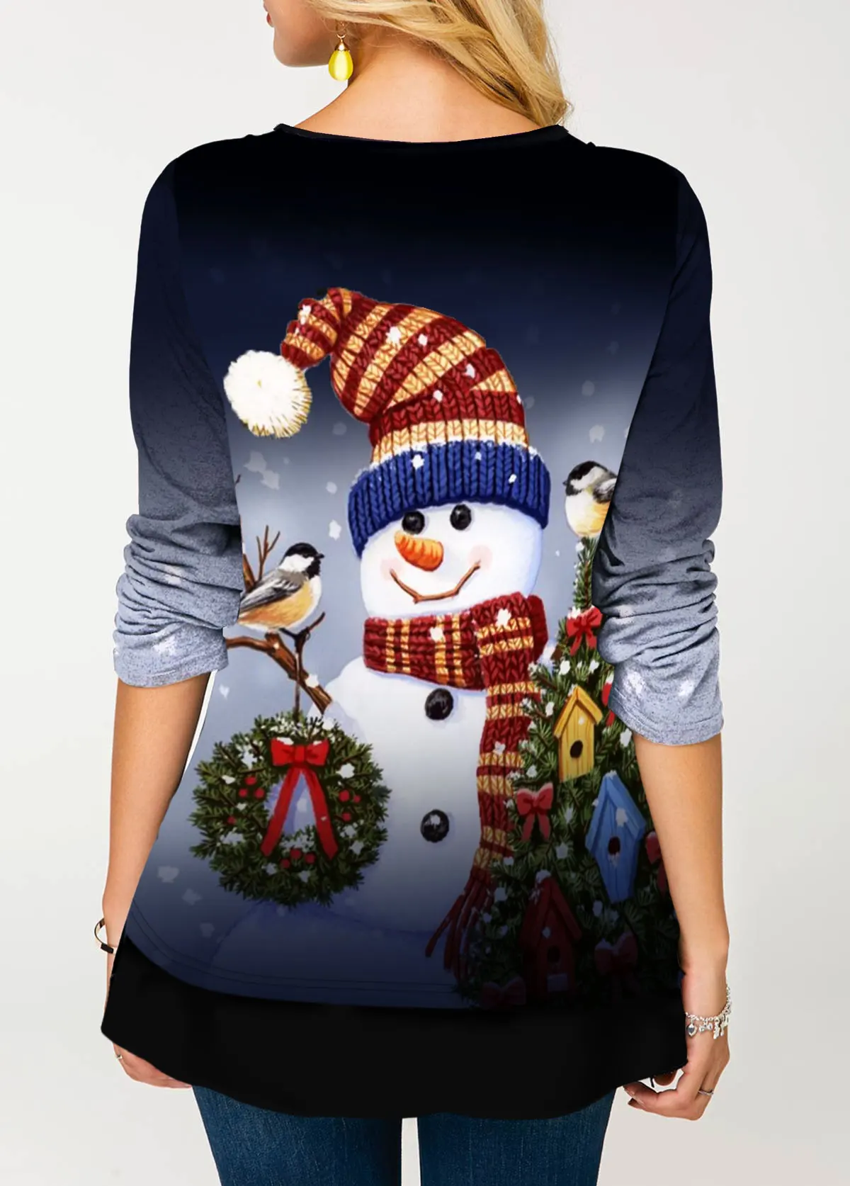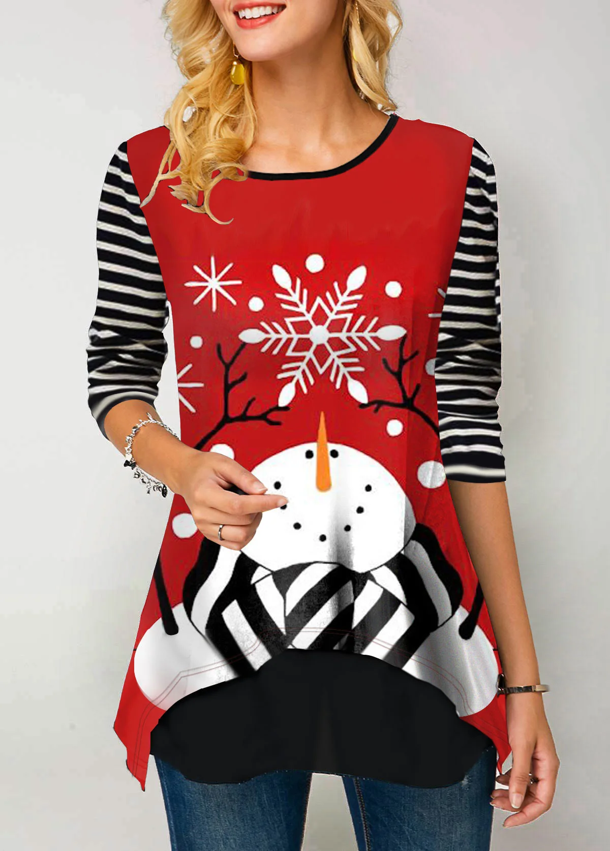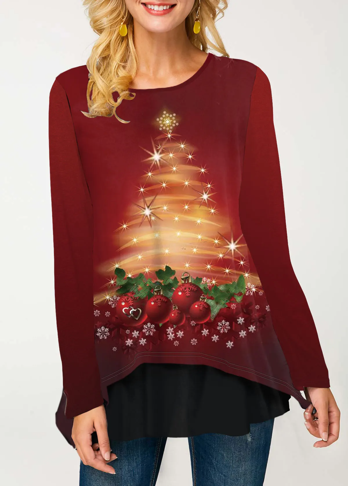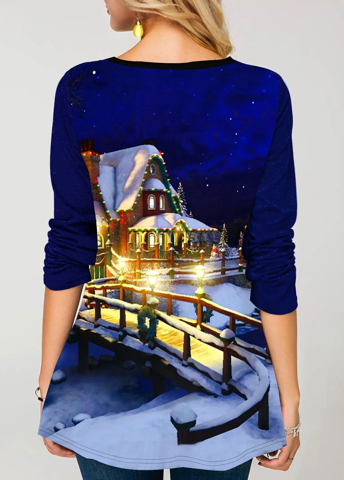 Woman Loose Blouse 2021 Autumn Fashion O-neck Long Sleeve Santa Claus Printed Pullover Ladies Tops Vintage Casual Street Tops