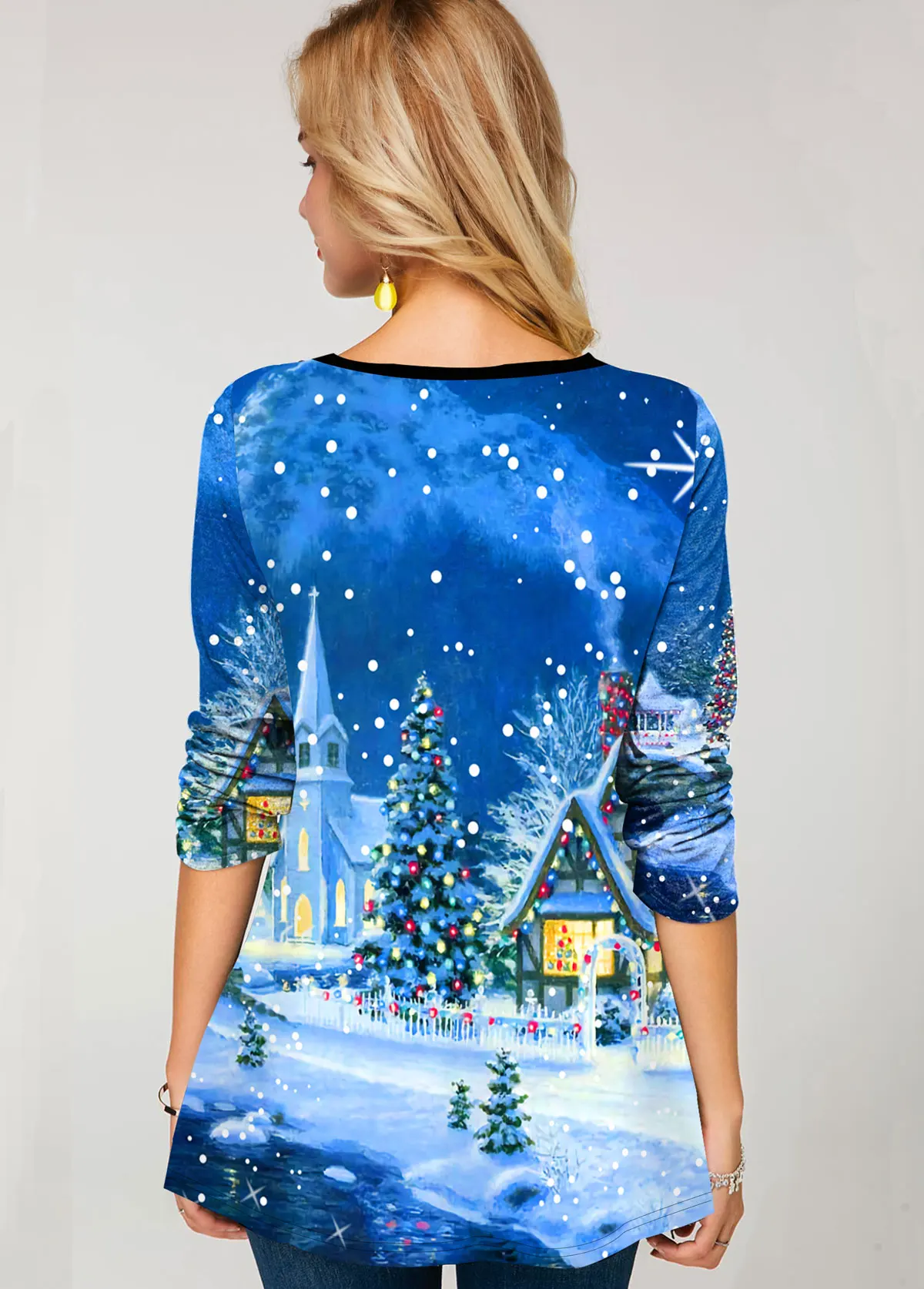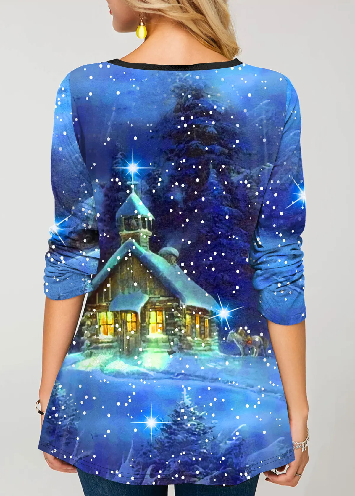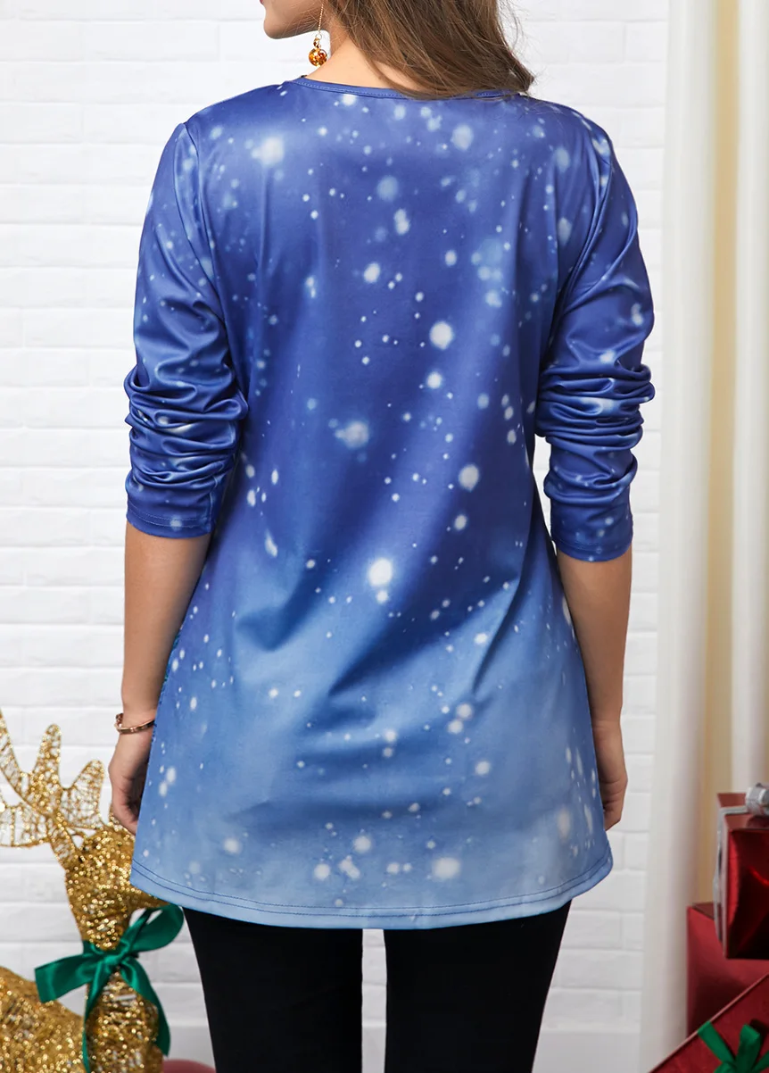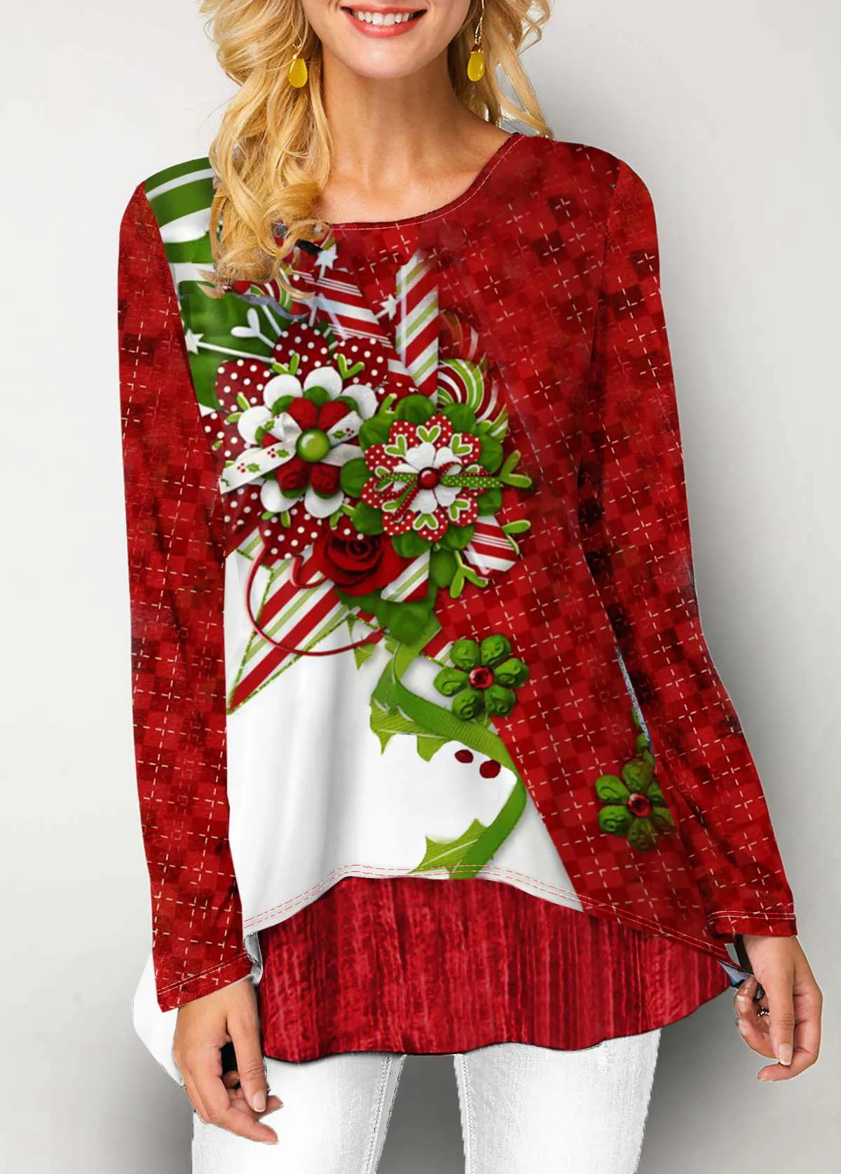 Woman Loose Blouse 2021 Autumn Fashion O-neck Long Sleeve Santa Claus Printed Pullover Ladies Tops Vintage Casual Street Tops